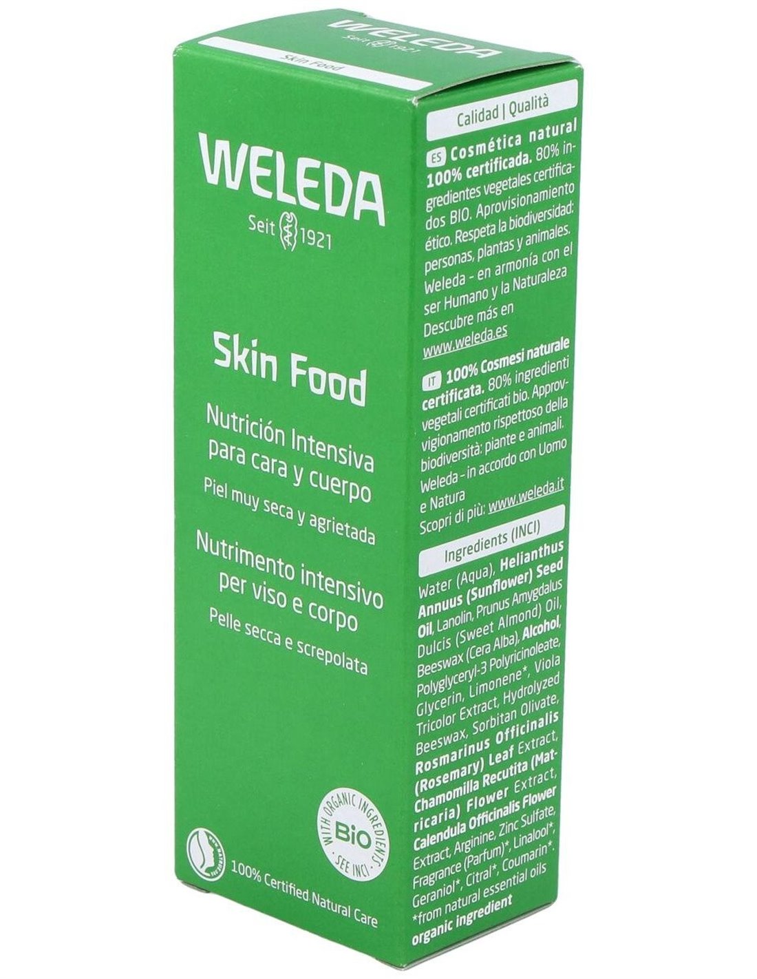 Skin Food Original - Crema Reparadora Intensiva 75ml de Weleda es una fórmula diseñada para personas que buscan un cuidado profundo para pieles secas o ásperas. Su composición está pensada para ayudar a restaurar la hidratación y suavidad en zonas que requieren atención especial.
