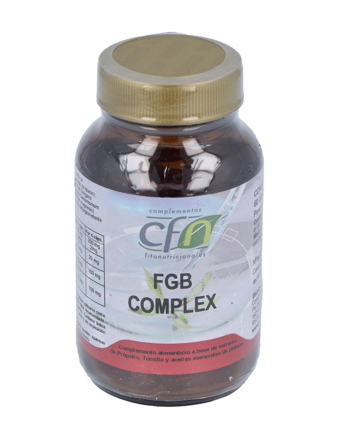 Fgb Complex (Fungibacter) 60Cap. de Cfn es un suplemento diseñado para personas que buscan apoyar su bienestar general mediante una fórmula específica que combina ingredientes seleccionados. Es adecuado para quienes desean complementar su rutina diaria con un producto elaborado bajo estándares de calidad.
