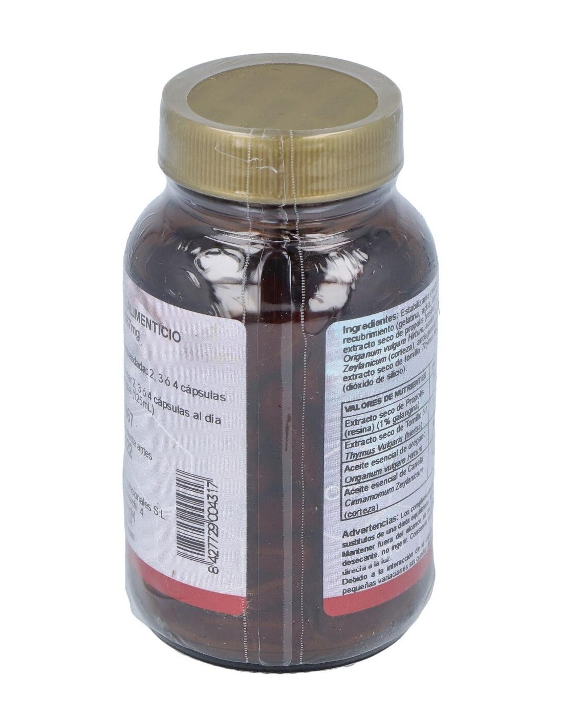Este producto natural contiene aceites esenciales (orégano y canela) de la más alta calidad con extracto de propóleo. Este producto posee una marcada