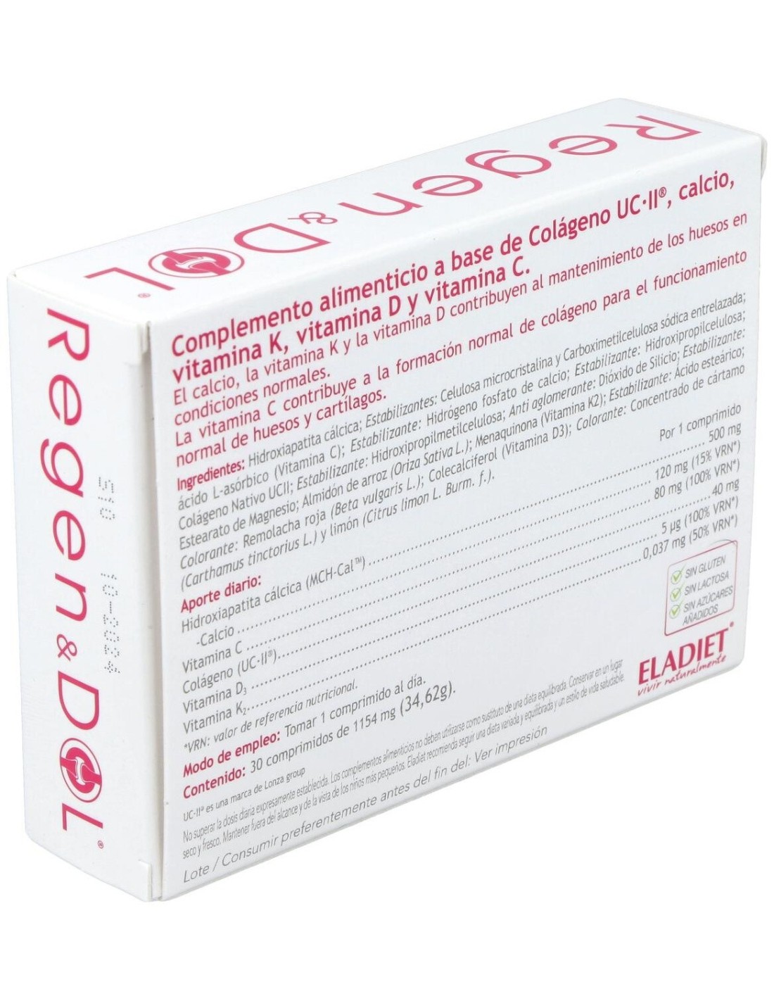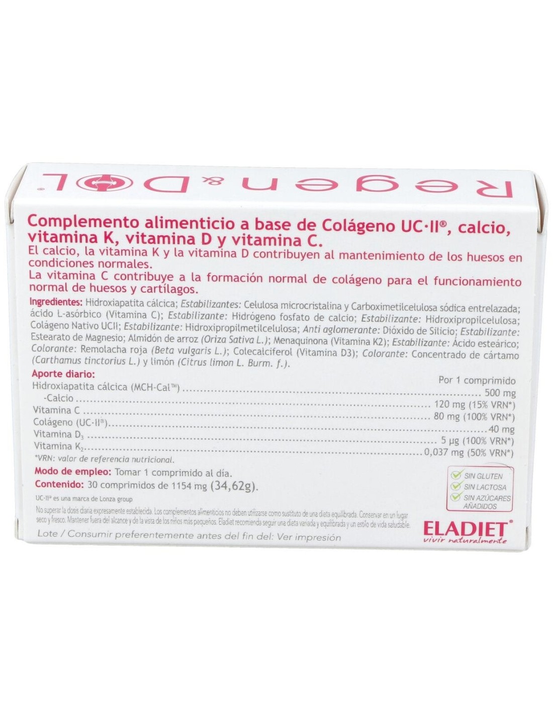 Regen & Dol Colageno Uc Ii 30Comp. de Eladiet ofrece una opción para quienes desean apoyar la salud de sus articulaciones mediante un complemento formulado con colágeno tipo II.