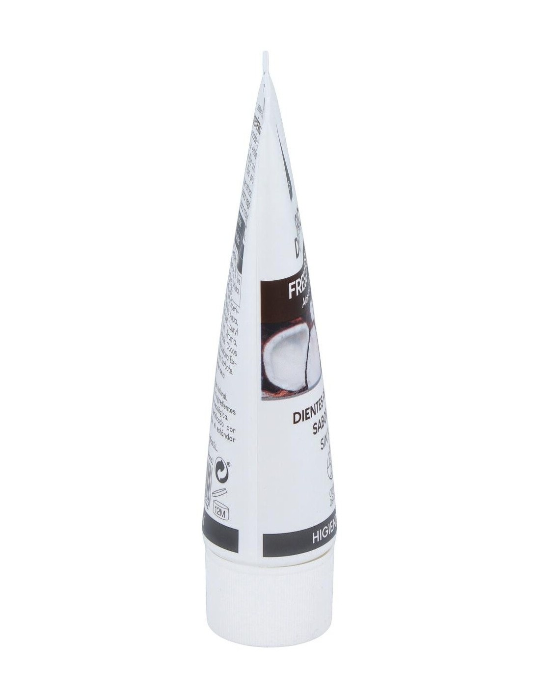 Ingredientes (INCI):Sorbitol, Mentha Piperita Leaf Water*, Hydrated Silica, Aqua, Aloe Barbadensis Leaf Juice*, Lauryl Glucoside, Xanthan Gum, Aroma, Bentonite, Sodium Benzoate, Cocos Nucifera Oil*, Stevia Rebaudiana Extract, Citric Acid, Potassium Sorbate. (*) Ingredientes procedentes de la agricultura ecológica.Modo de empleo:Cepillarse los dientes después de cada comida, durante 2 minutos. A partir de 7 años.Presentación:Envase de 75 ml sabor a coco.Recomendaciones y advertencias:Apta para veganos. No contiene flúor, colorantes, sulfatos ni gluten.