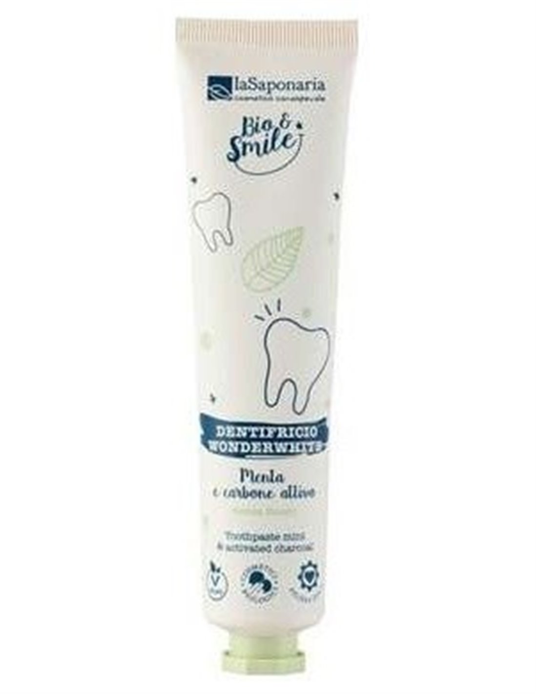 Contiene aloe vera y tres tipos de menta para dar una increíble sensación de frescura, partículas de sílice y carbón activado para ayudar a eliminar suavemente las manchas y hacer que el esmalte brille sin dañarlo. Producto vegano.