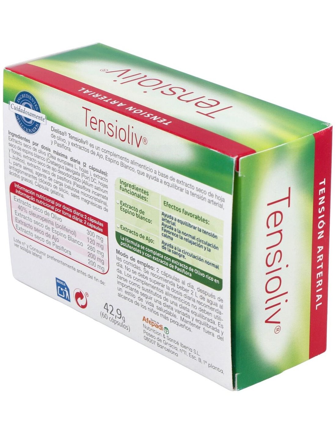 Complemento alimenticio a base de extracto seco de hoja de olivo, que ayuda a mantener una tensión arterial normal. Además contiene extracto de Ajo, Espino Blanco y Pasiflora.