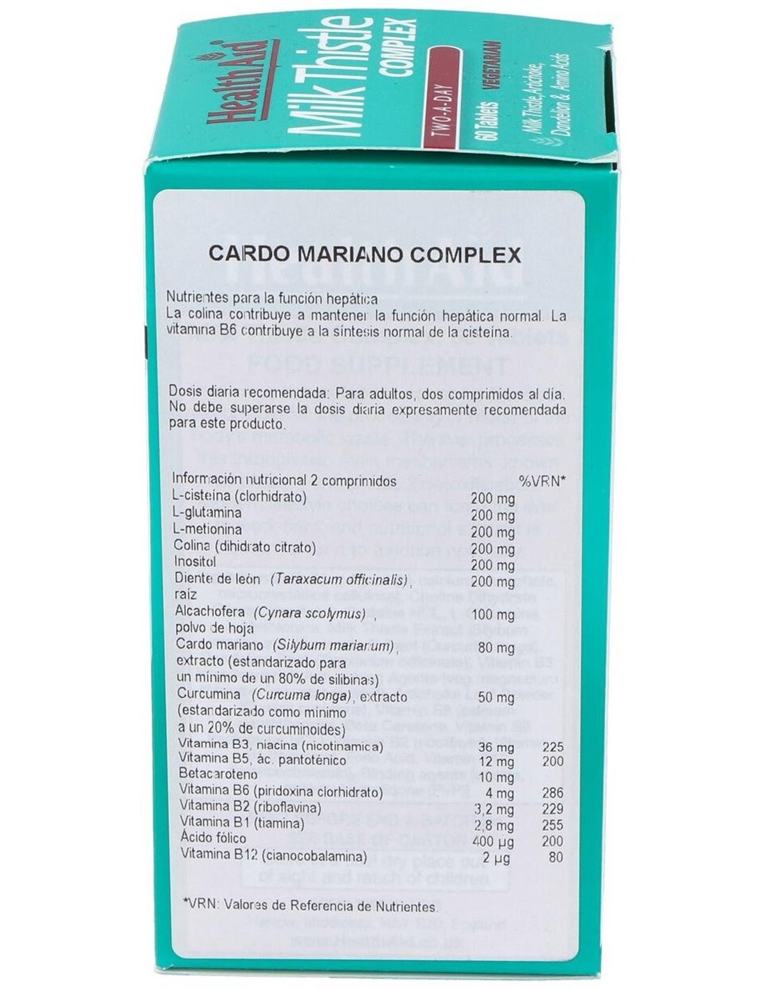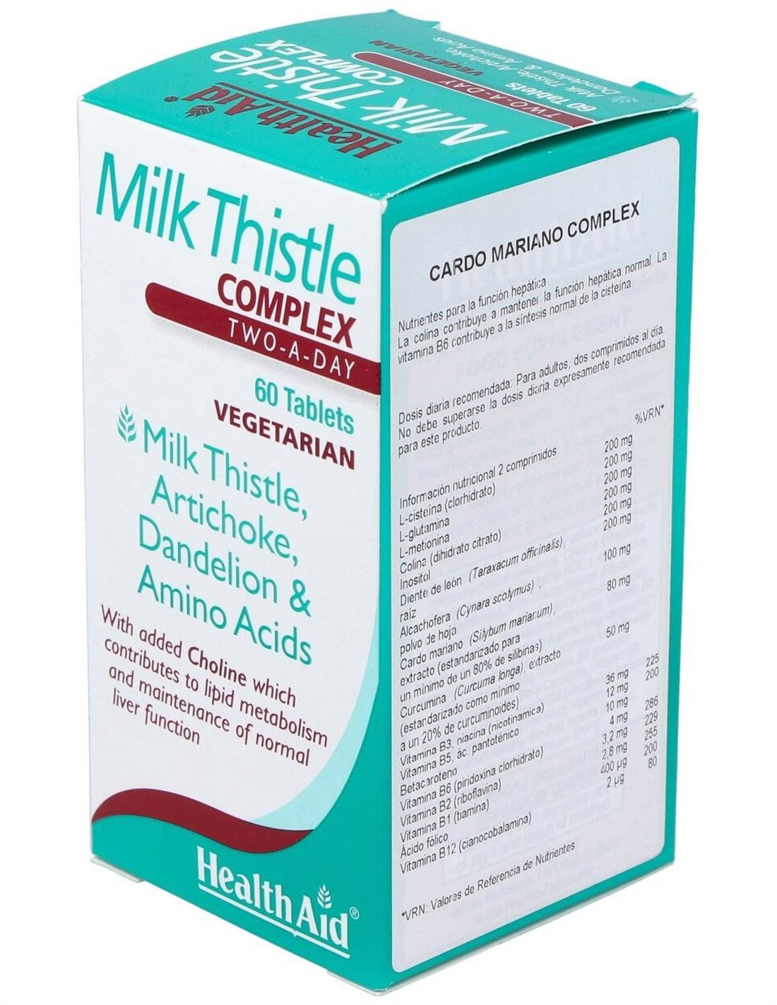 El Cardo Mariano Complex 60Comp. de Health Aid es un suplemento diseñado para personas que buscan apoyar su bienestar general mediante ingredientes naturales. Su formulación está pensada para quienes desean complementar su dieta con componentes que contribuyen al cuidado hepático y antioxidante.