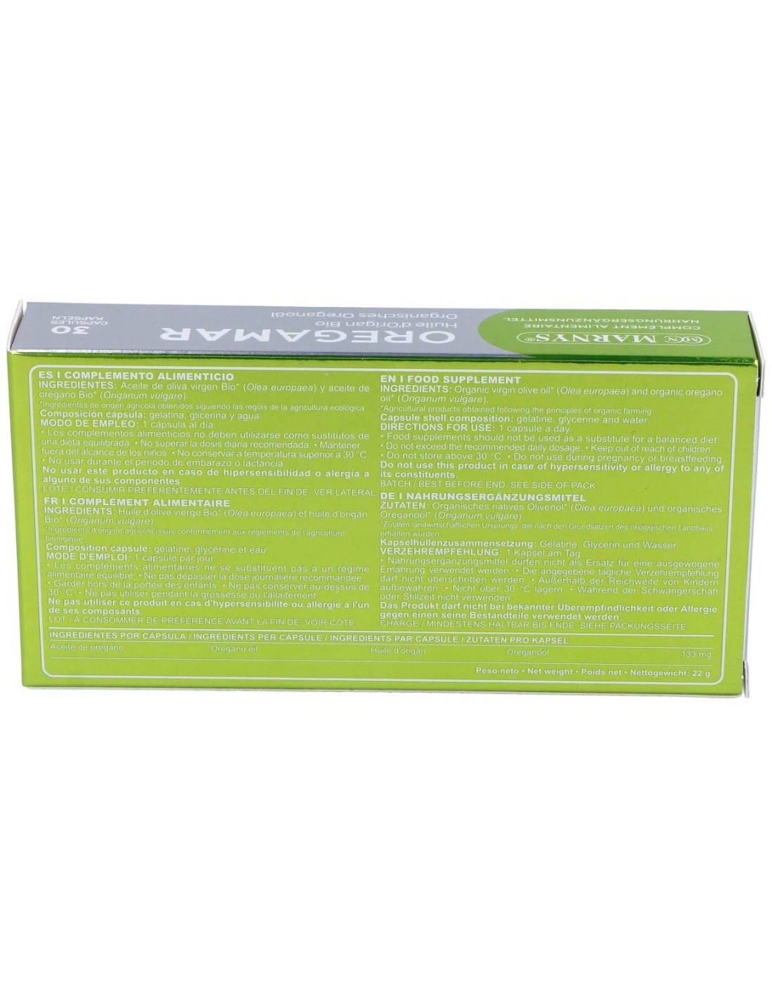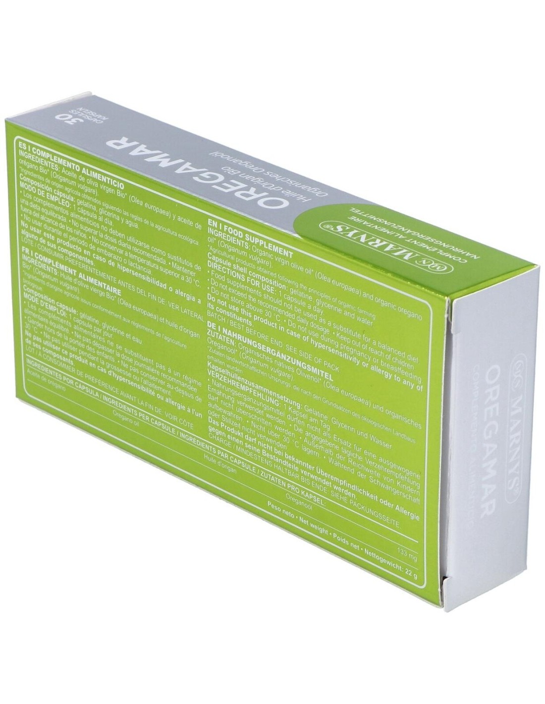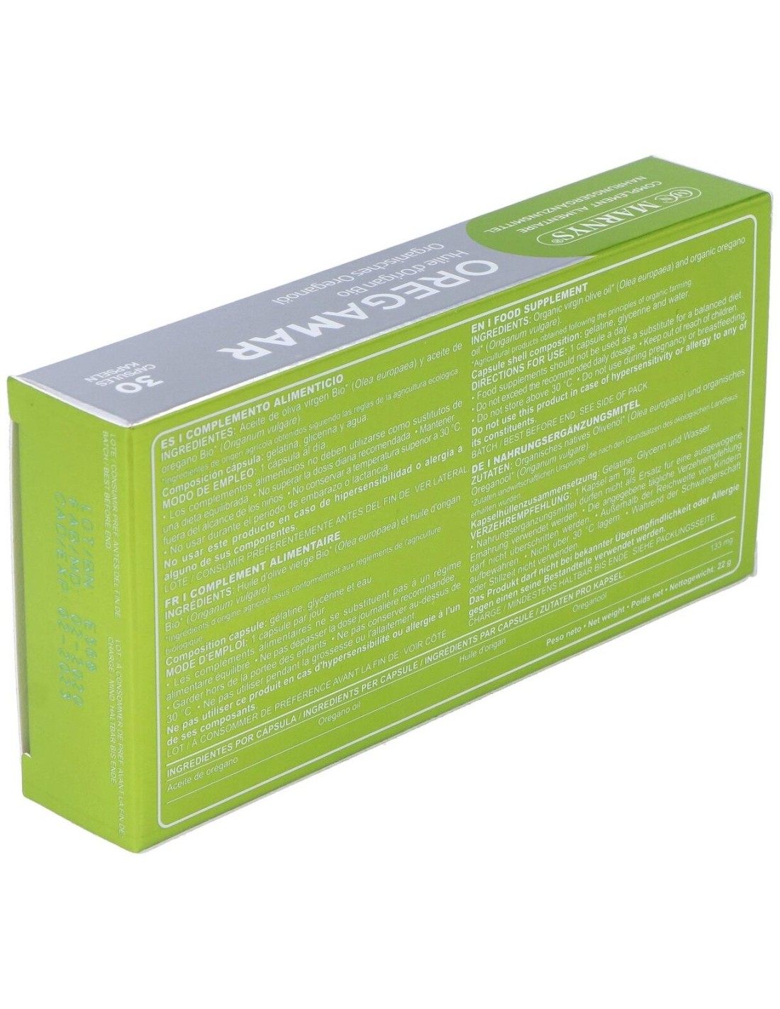 Elaborado con ingredientes de origen natural, Oregamar 30Perlas de Marnys combina extractos marinos en una presentación que facilita su incorporación en la rutina diaria. Su diseño en perlas asegura una administración sencilla y una dosificación controlada.