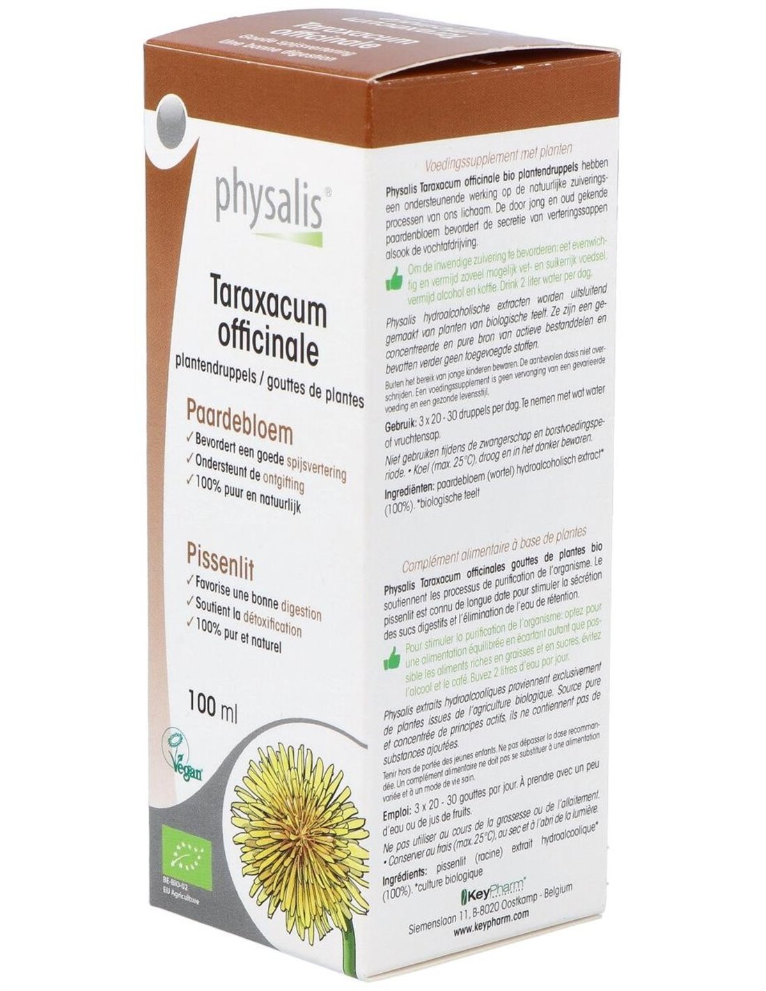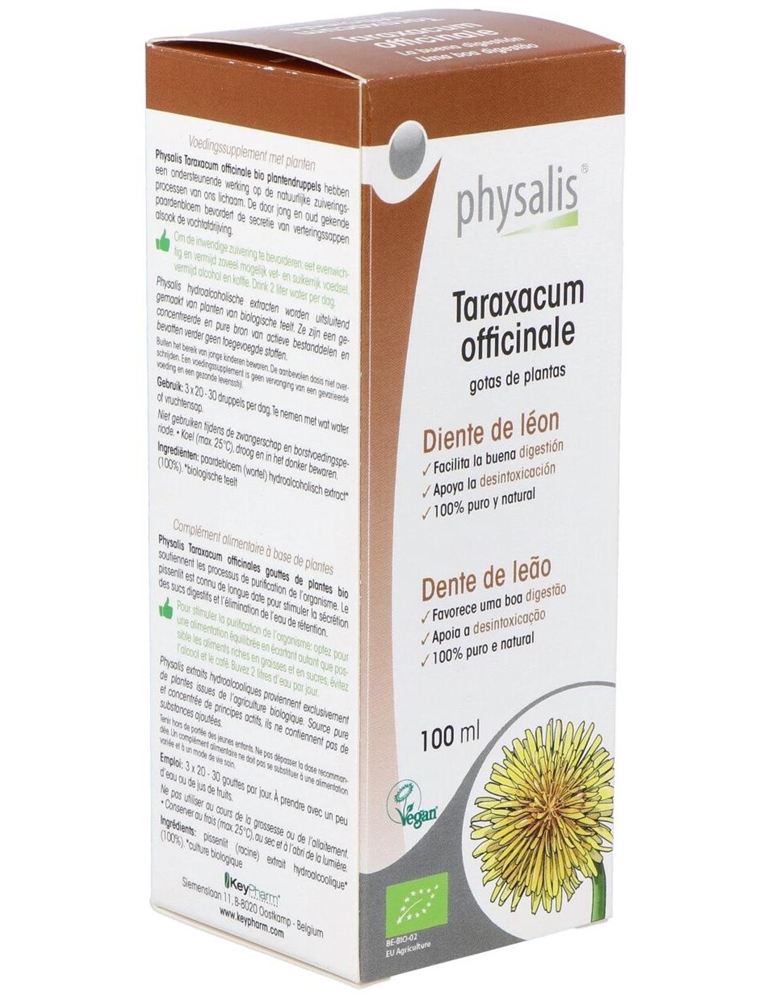 La Tintura Taraxacum Officinale (Diente de León) de Physalis es un complemento herbal para personas interesadas en remedios naturales, que aporta extracto concentrado de diente de león para apoyar el bienestar general.