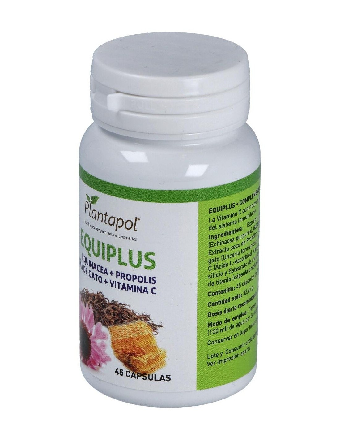 Plantapol Equiplus (Equinacea, Própolis, Uña de Gato, Vitamina C) de Plantapol es un complemento alimenticio diseñado para personas que buscan apoyar su bienestar diario mediante ingredientes naturales. Su formulación combina extractos vegetales y vitamina C, pensada para quienes desean incorporar componentes de origen vegetal en su rutina.