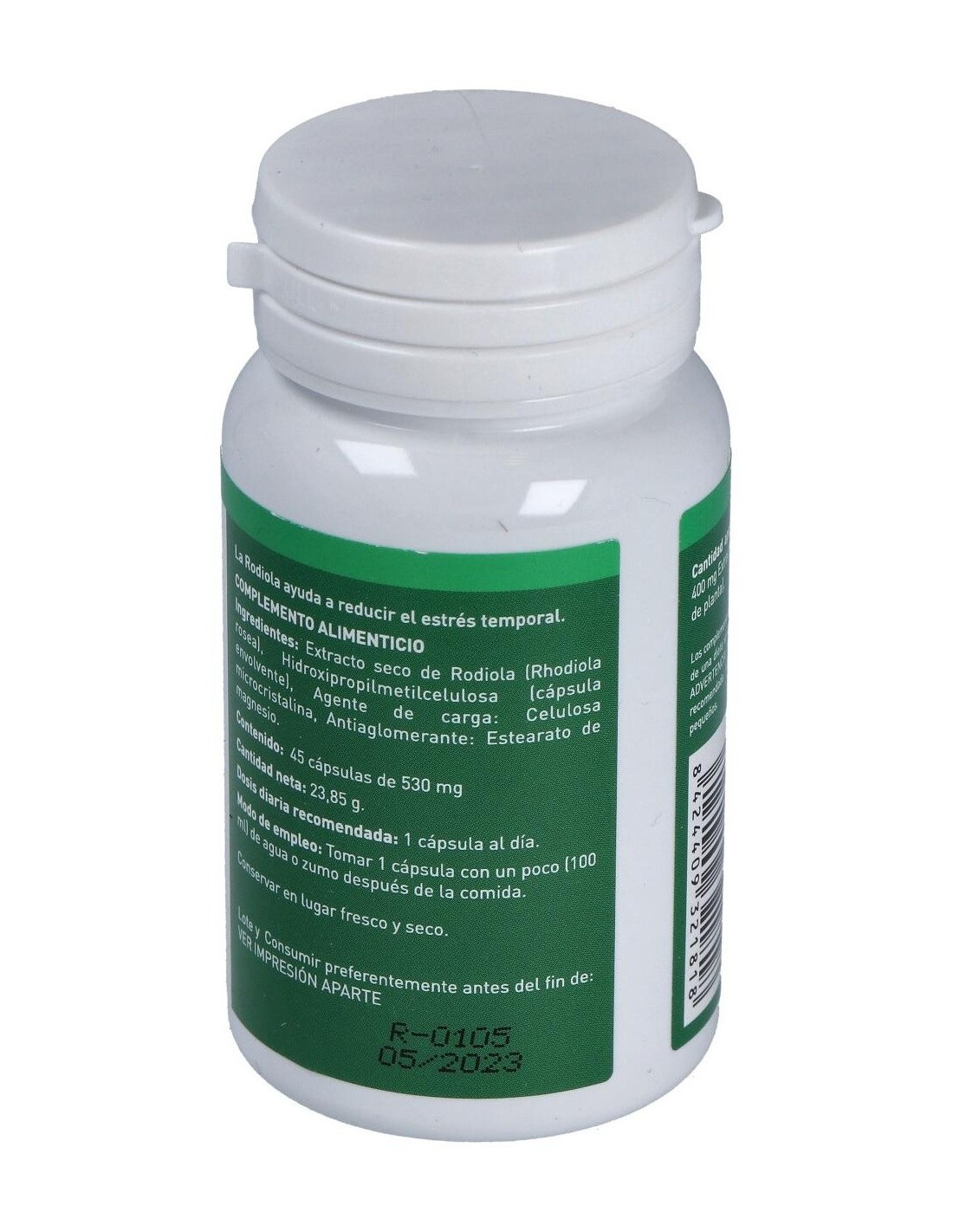- Cada cápsula contiene 400 mg de extracto de Rhodiola Rosea, facilitando una dosificación práctica y constante.