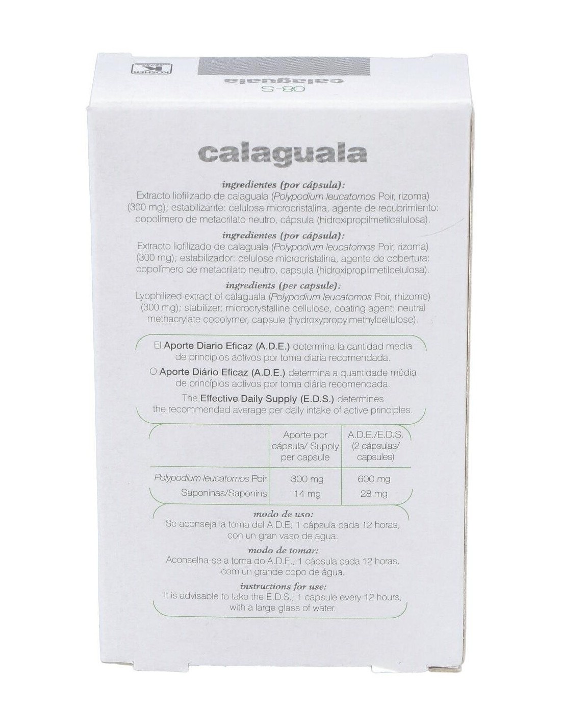 - Contiene extracto de calaguala, reconocido por su uso histórico en la fitoterapia.