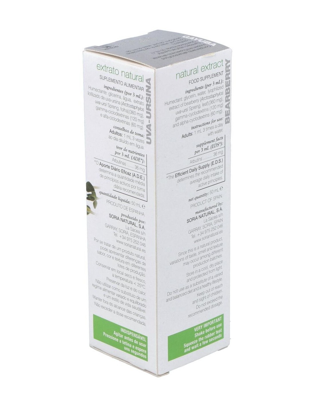 - Extracto de gayuba en presentación líquida de 50 ml, facilitando su dosificación y consumo.