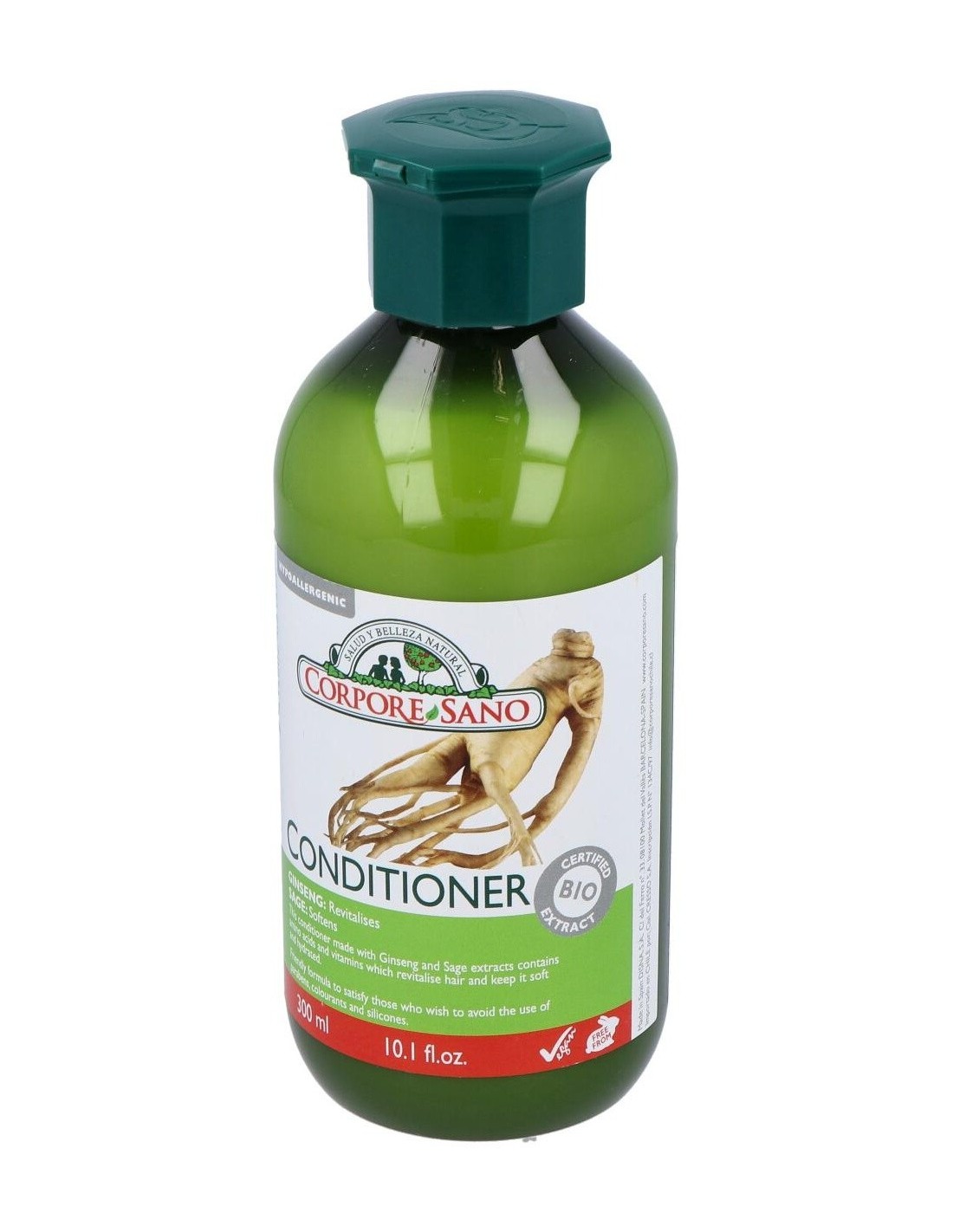 El Acondicionador de Ginseng de Corpore Sano actúa sobre la capa externa del cabello: hidrata, suaviza y da brillo a la fibra capilar. El uso del acon