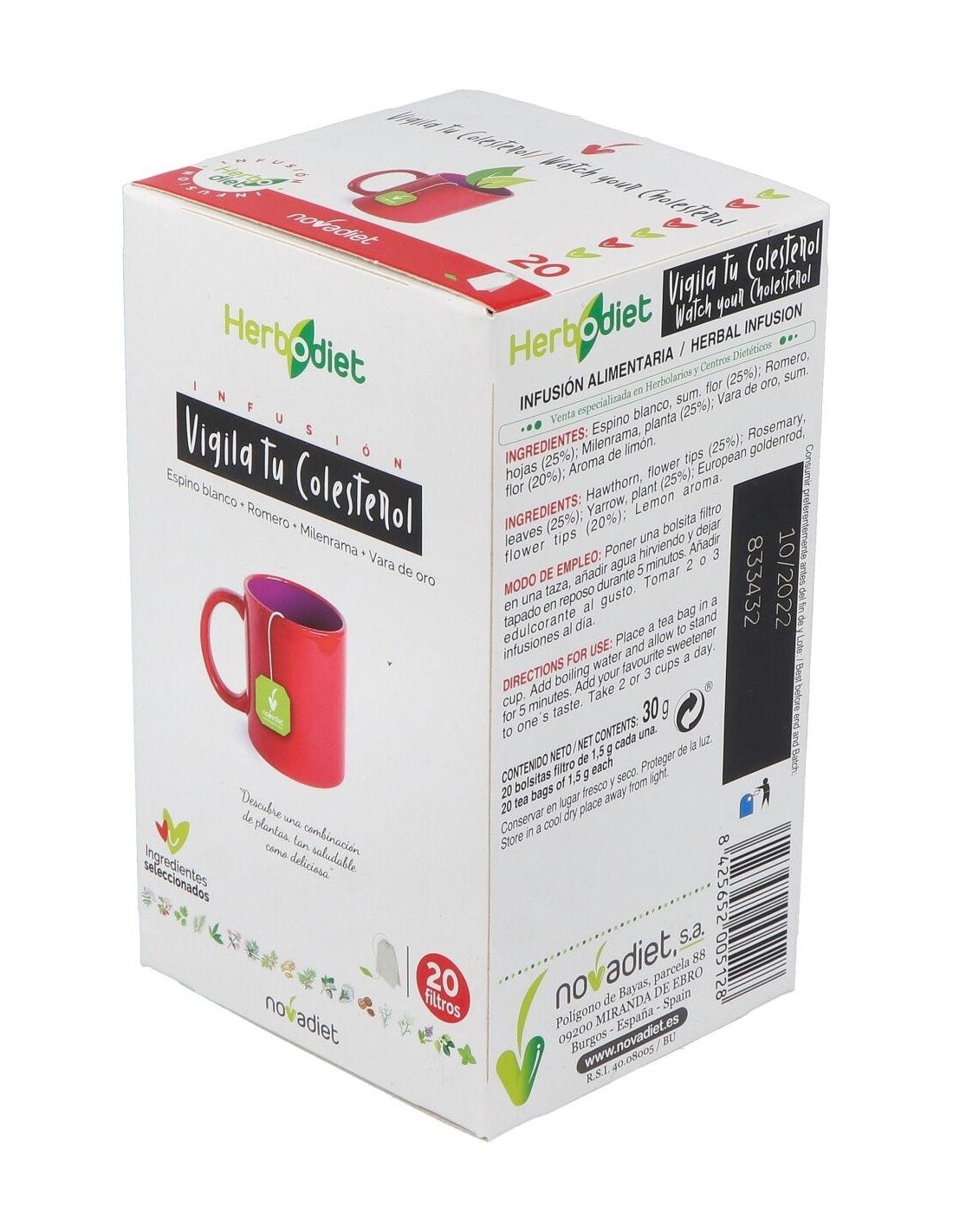 Herbodiet Vigila Tu Colesterol Envase de 20 bolsitas filtro de 1,5 g. de Novadiet
