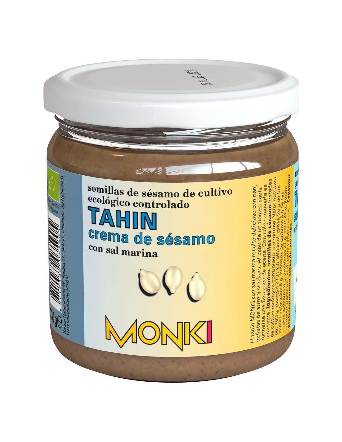 - Elaborado con semillas de sésamo tostadas de cultivo biológico, aportando un sabor característico y una textura cremosa.