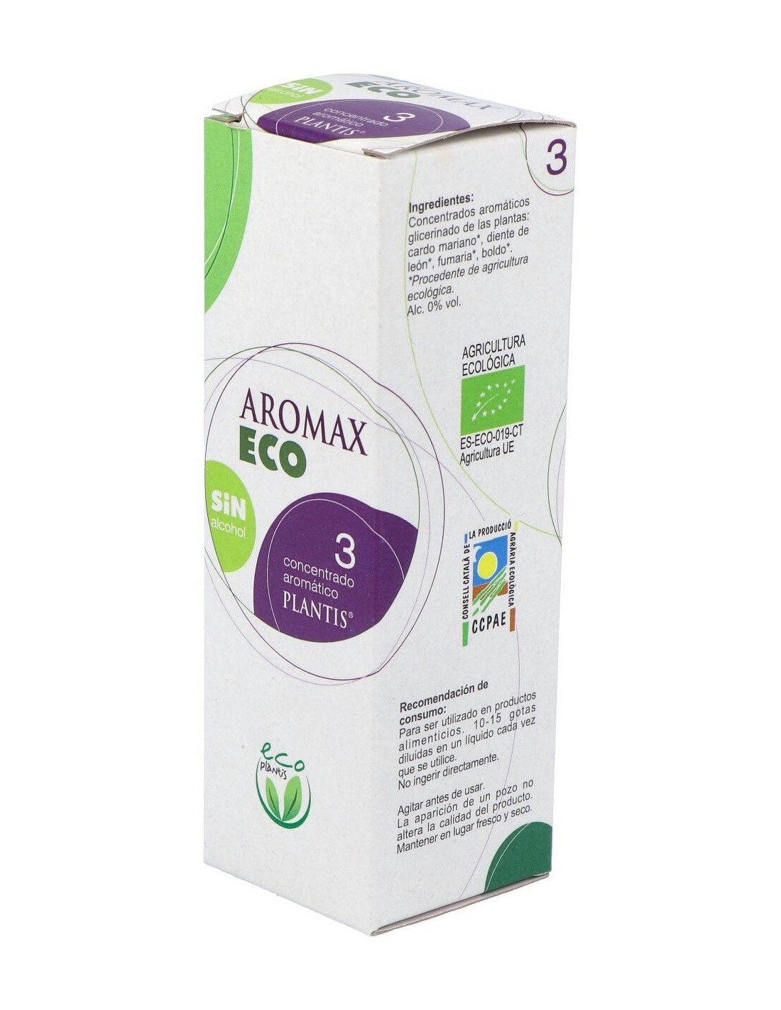 Los extractos de Aromax Eco han sido elaborados con plantas de cultico ecológico y algunas de ellas procedentes de plantas salvajes controladas en su recogida, la extracción de los principios activos se ha hecho mediante la técnica PAP (Protection Actifs Primaires), técnica no destructiva que permite una extracción de todos los principios activos de las plantas mediante un doble extracción alcohólica y posterior sustitución del alcohol por glicerina vegetal, sin que se produzcan alteraciones en la calidad de los principios activos y consecuentemente en sus propiedades benéficas.Principios activos: