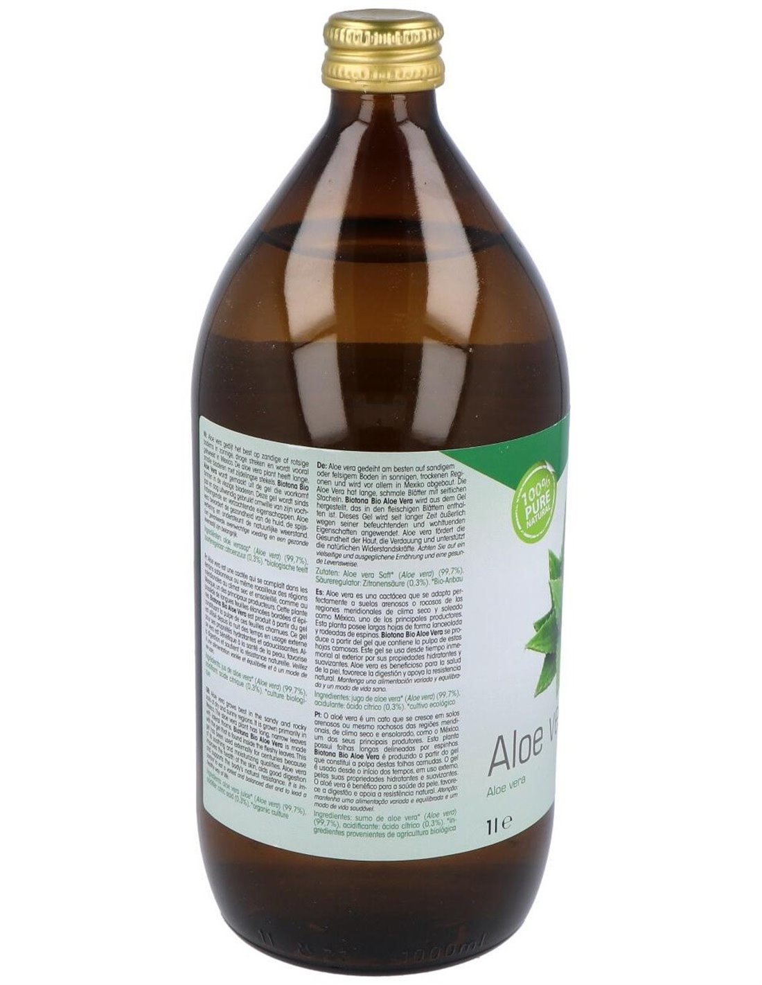 El Jugo Aloe Vera Juice de Biotona es un suplemento natural para personas que buscan apoyar su bienestar digestivo, elaborado con aloe vera puro para favorecer la hidratación y la salud intestinal.