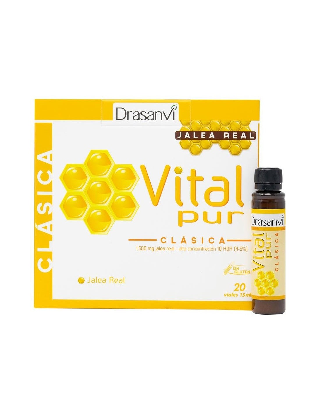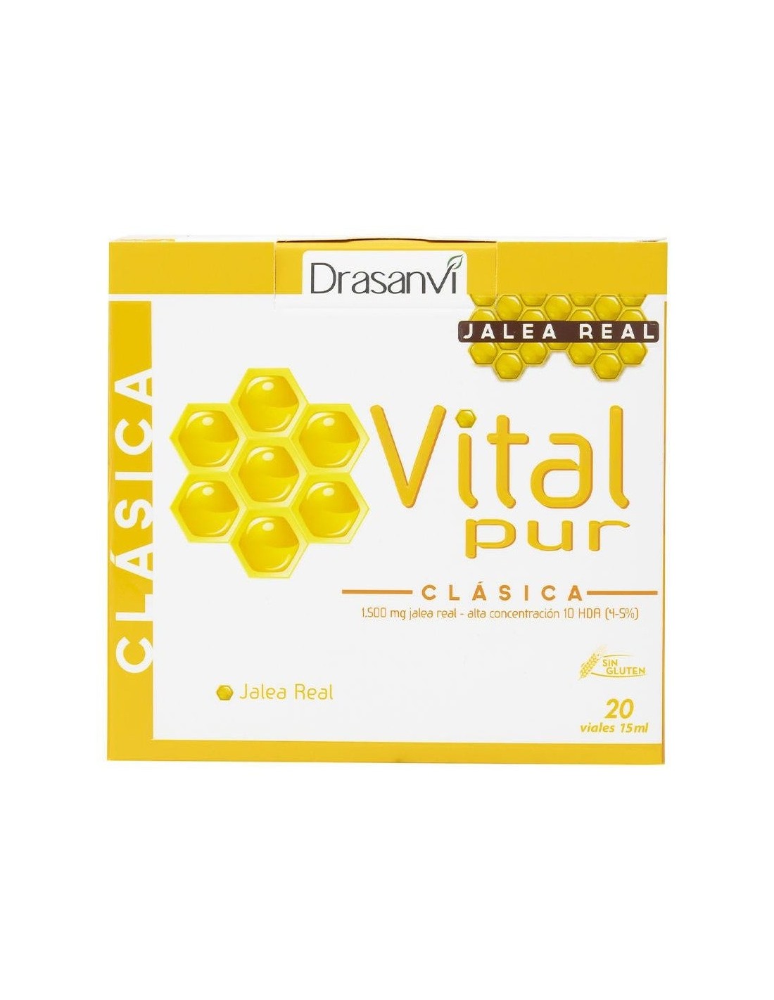 Vitalpur Clásica es un complemento alimenticio a base de Jalea Real, aportando 1.500 mg por dosis diaria. La Jalea Real es una sustancia producida por las abejas, rica en nutrientes como vitaminas, minerales, ácidos grasos esenciales y aminoácidos. Vitalpur Clásica, no lleva azúcares añadidos, sólo contiene edulcorante natural (glucósidos de esteviol), extraídos de las hojas de la planta Stevia rebaudiana bertoni.El ácido 10-hidroxidecenoico (conocido como 10-HDA), es una sustancia cuya cantidad determina la calidad de la Jalea Real. Su valor marca si se ha conservado correctamente y mantiene las propiedades de la jalea recién extraída de la colmena. Estándares de calidad han determinado que una Jalea de calidad tiene que tener como mínimo una cantidad de un 3% 10-HDA (en relación a Jalea liofilizada). Vitalpur, como sinónimo de jalea de calidad y bien conservada posee una cantidad de 10-HDA mínima de un 4-5%.Ingredientes por vial:1.500 mg de jalea real.Modo de empleo:Tomar 1 vial al día en ayunas. Presentación:Envase de 20 viales.
