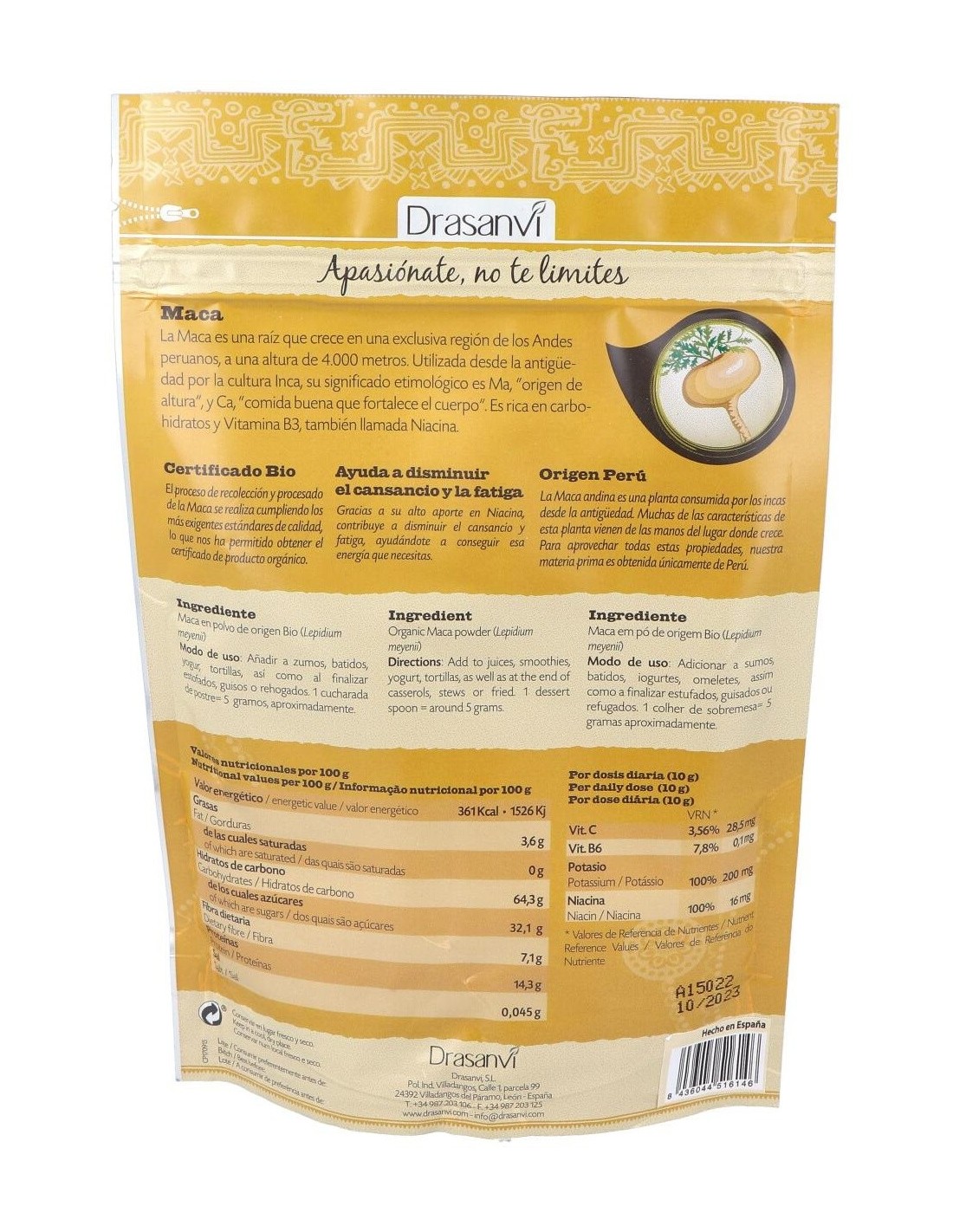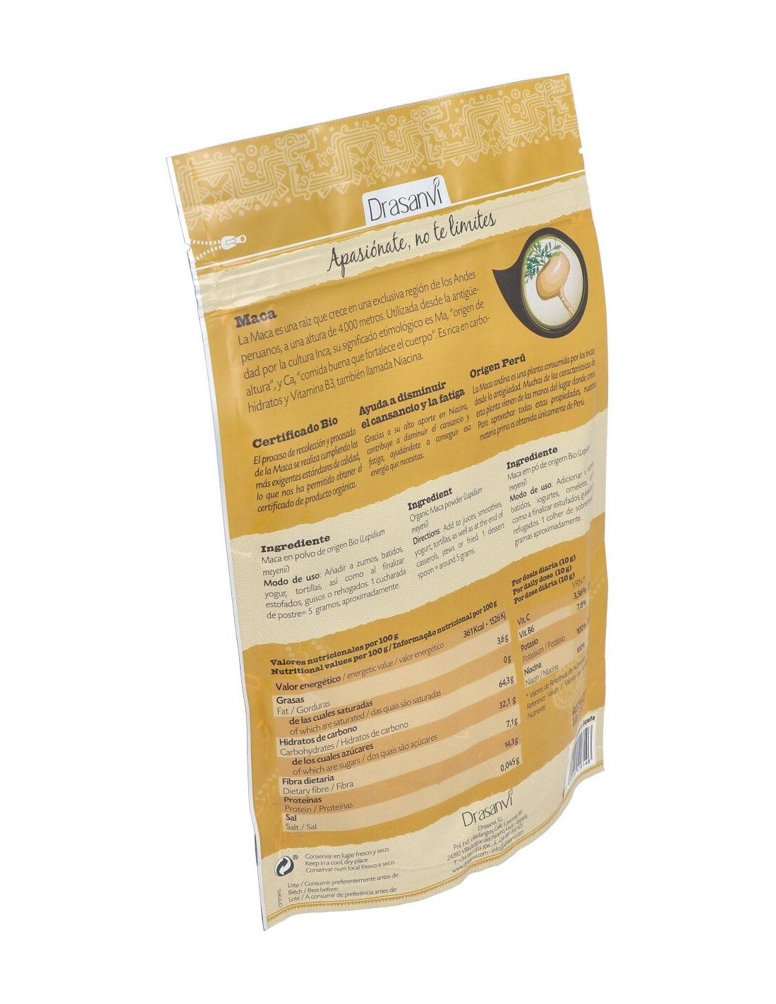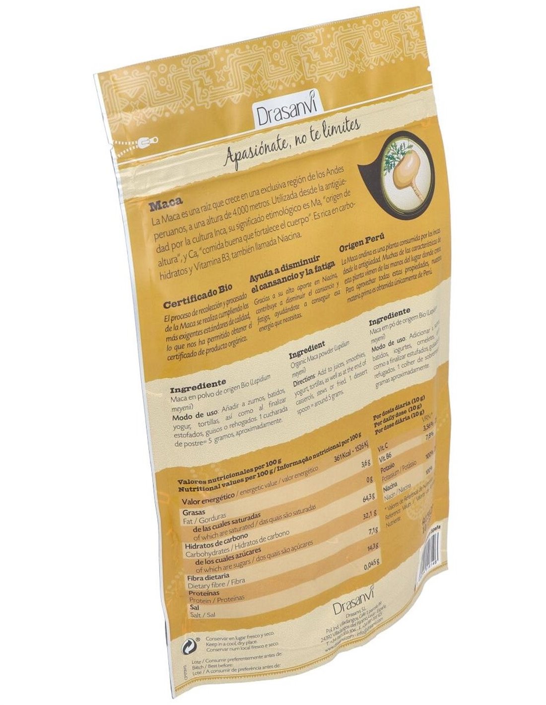 Maca Bio 225G Doypack Superalimentos Drasanvi