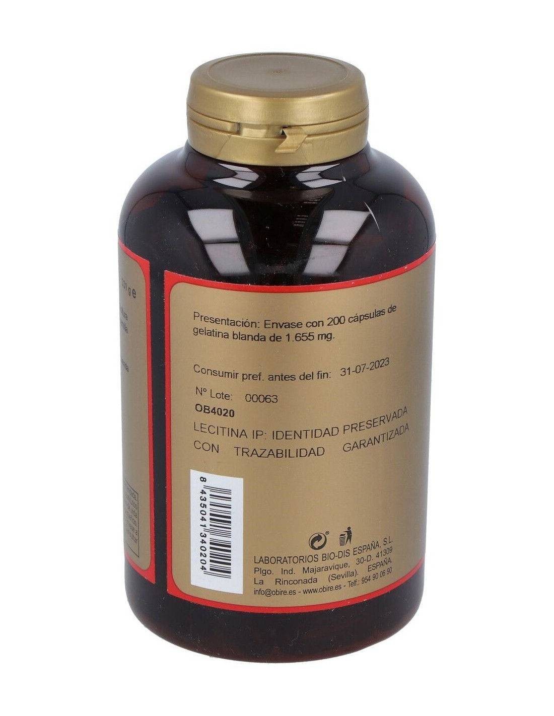 LECITINA DE SOJA IP 1200mg. 200perlas de OBIRE