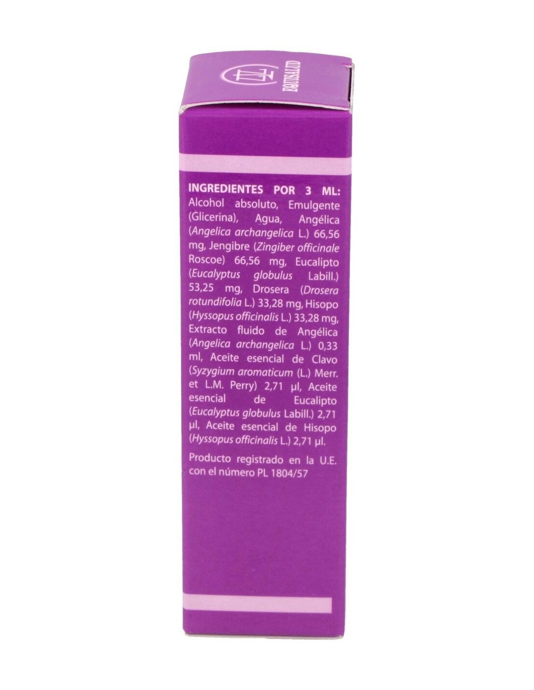 Este síndrome expresa la lesión de pulmón por frío externo. Puede involucrar por el BIAO LI al intestino grueso o atacar directamente al pulmón bloqueando su energía. Hay que eliminar flemas (FA TAN) y calmar la tos (ZI KE) de origen frío-humedad. Manifestaciones asociadas a este síndrome: Miembros fríos, escalofríos, cara pálida, temor al frío, búsqueda del calor y las bebidas calientes, orina clara y abundante, poca fiebre, dolor en el cuerpo, no sudoración, lengua con capa ligera y blanca, pulso superficial y ceñido, mocos claros y líquidos, tos. Composición:Angélica (Angelica archangelica), Clavo (Syzygium aromaticum), Drosera (Drosera rotundifolia) Eucalipto (Eucalyptus globulus), Jengibre (Zingiber officinale), Hisopo (Hyssopus officinalis), Clavo (Syzigium aromaticum). Modo de empleo:Tomar de 20 a 30 gotas disueltas en medio vaso de agua, 3 veces al día. Presentación:Frasco de 31 ml.