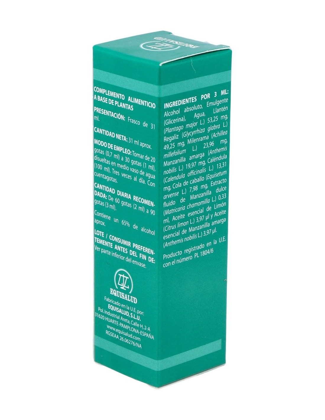 Se unen plantas sinérgicas con acciones regeneradoras-cicatrizantes y acciones antiinflamatorias, capaces de mejorar el estado de la mucosa digestiva. Se trata de regenerar la mucosa dañada a fin de mejorar la sintomatología causada por esa deficiencia (gases, ardor, vacío...). La cola de caballo aporta silicio regenerador orgánico y tiene una acción hemostática. Composición: