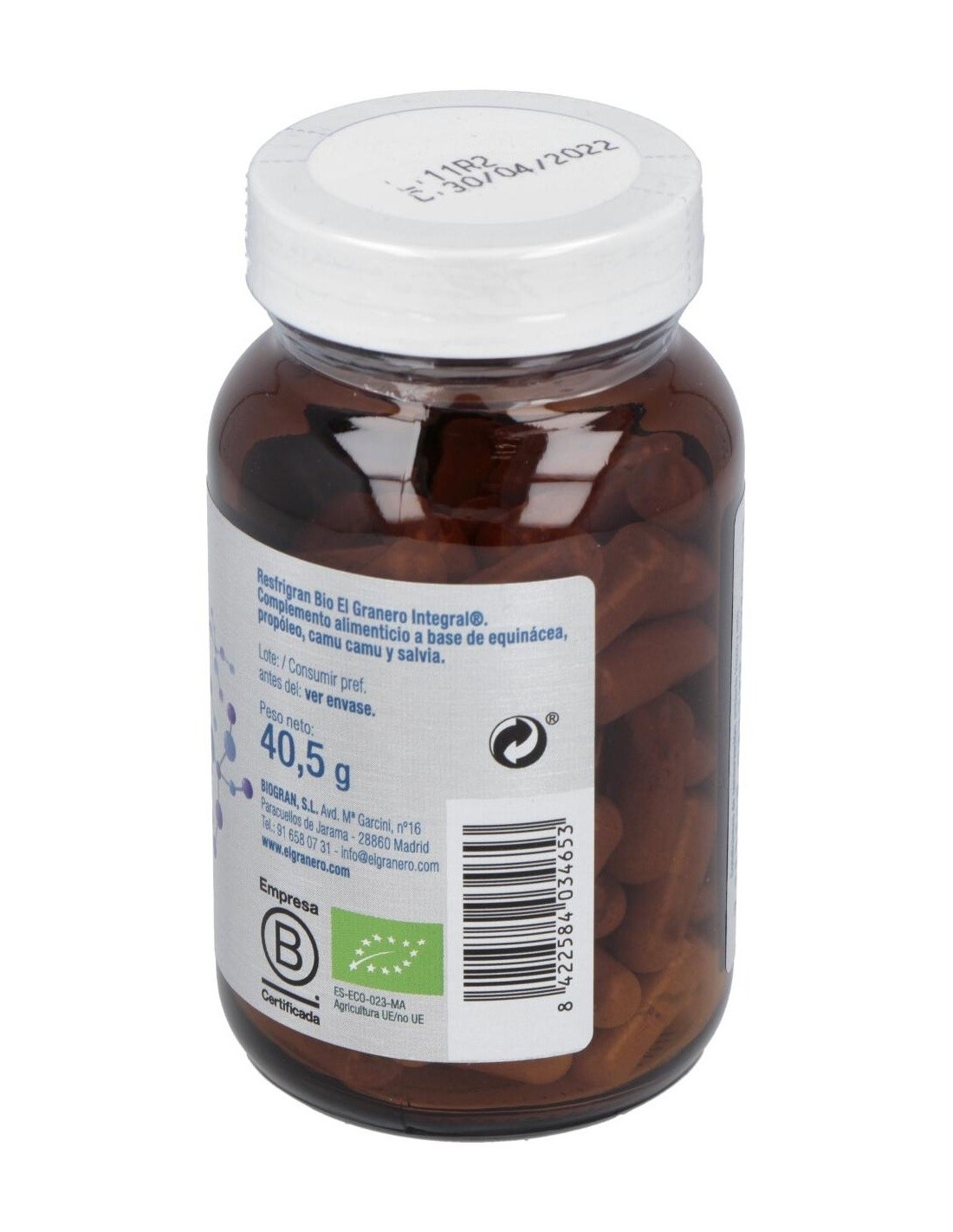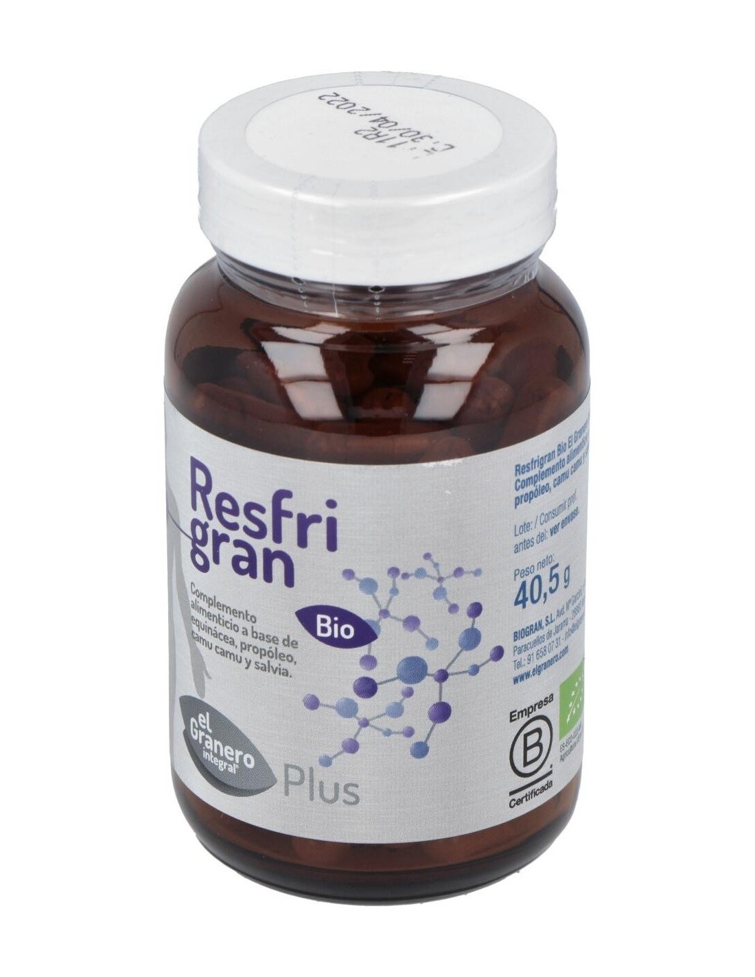 Resfrigran 90Cap. Bio de El Granero es un suplemento natural para personas que buscan apoyar su bienestar respiratorio, formulado con ingredientes bio que contribuyen a mantener las defensas del organismo.