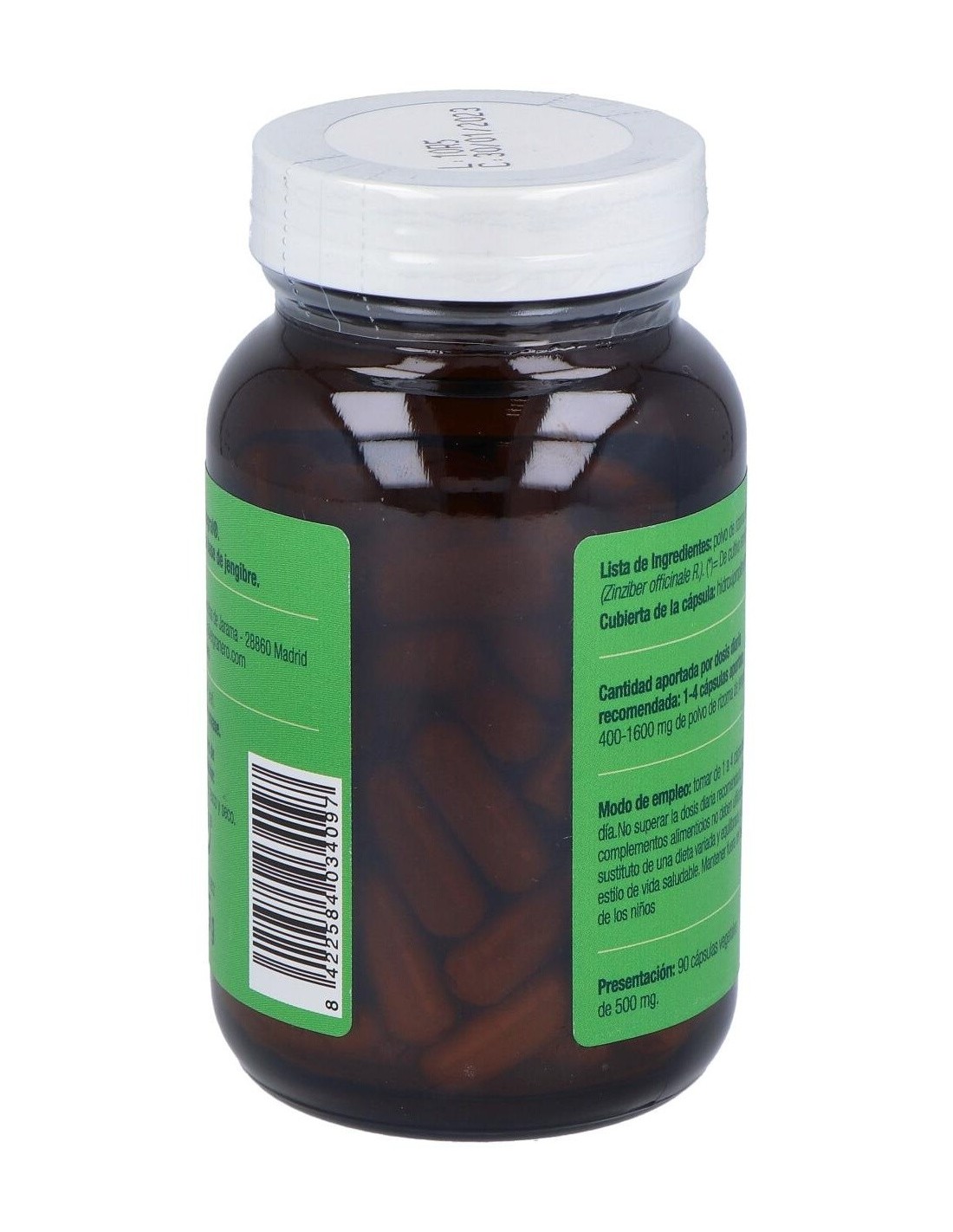 - Cada cápsula contiene 500 mg de jengibre en su forma bio, contribuyendo a una ingesta controlada y práctica.
