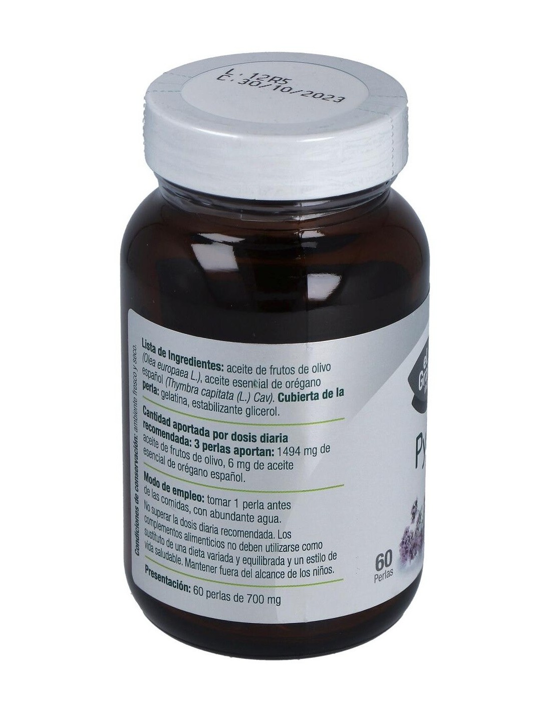 El orégano español es una planta aromática de origen mediterraneo que se lleva utilizando milenariamente a nivel culinario. A través de diversos estudios se ha comprobado su potente efecto como antibiótico y antifúngico natural. Este efecto es debido principalmente a dos de sus componentes: carvacrol y timol. Se ha demostrado que es mucho más efectivo el orégano silvestre que el cultivado, debido a que es más rico en compuestos fenólicos. Pylbac representa una importante alternativa natural ante la resistencia a antibióticos. Estimula el crecimiento de bacterias probióticas, por lo que no afecta negativamente a nuestra flora intestinal. Resulta muy eficaz en casos de Helicobacter Pilory, bacteria causante de la mayoría de úlceras gástricas y gastritis, con síntomas como dolor abdominal, flatulencia, pérdida de peso y mal sabor de boca. En casos de candida albicans, además del efecto fungicida, regenera la flora y es efectivo en casos de resistencia de otras sustancias. Es necesario complementar con una dieta alcalina y no ingerir azúcar ni harinas refinadas en la dieta. Crea un ambiente inhóspito en la mitocondria de la célula, así el virus no puede adherirse y se evita la replicación vírica. Principales usos: