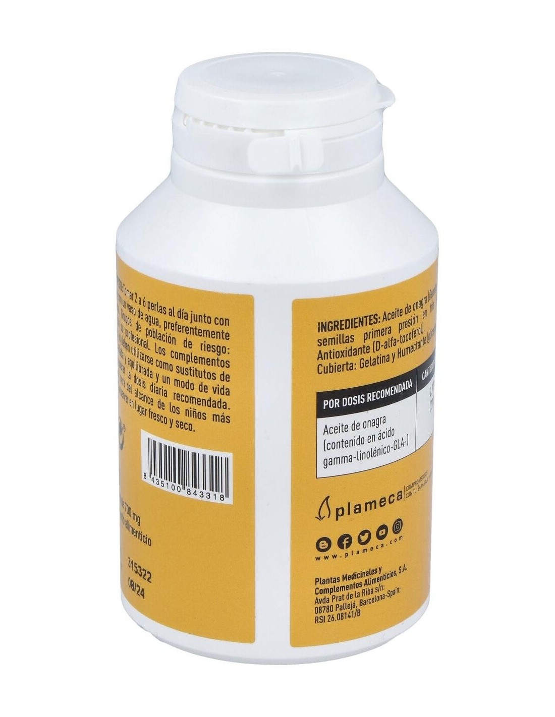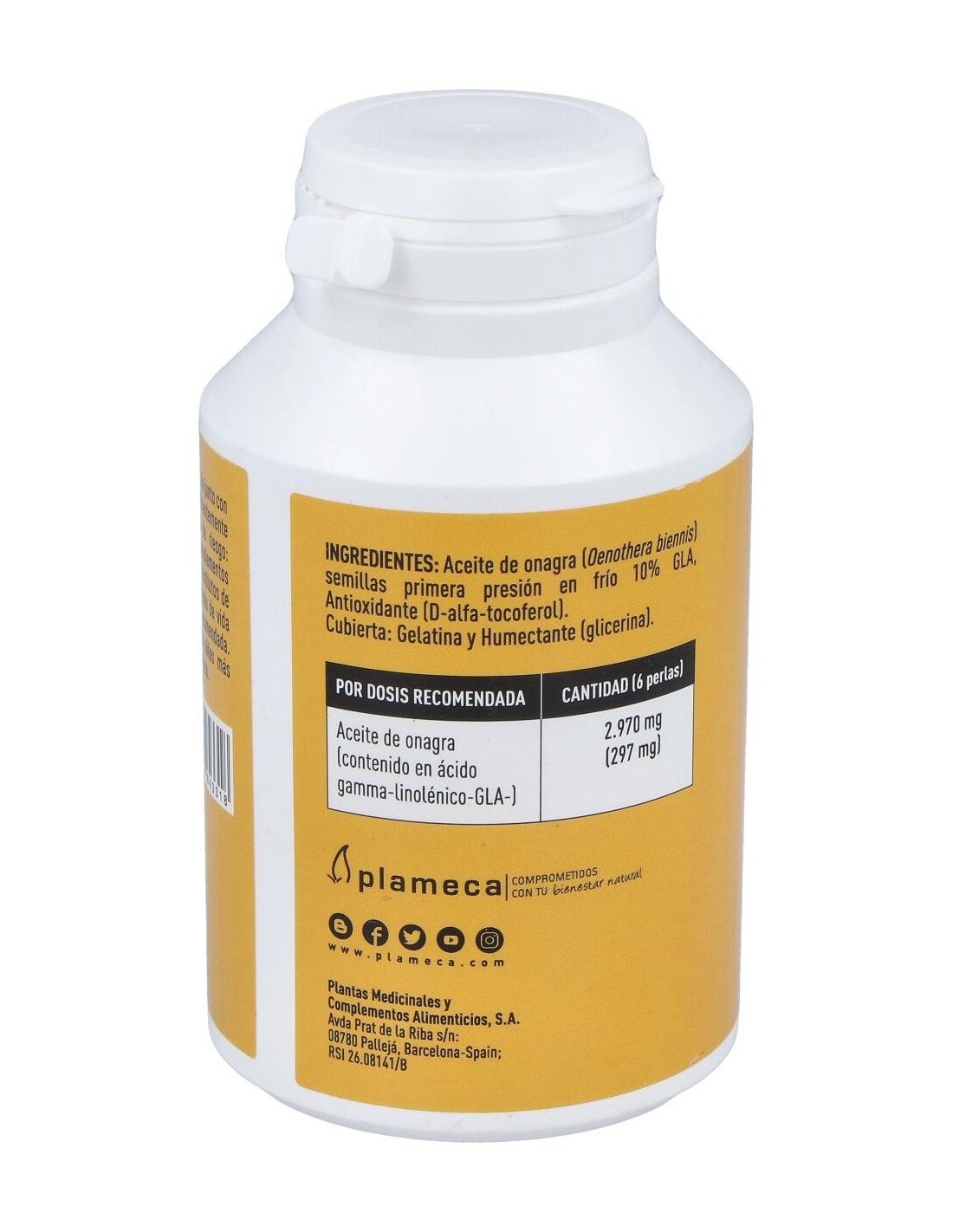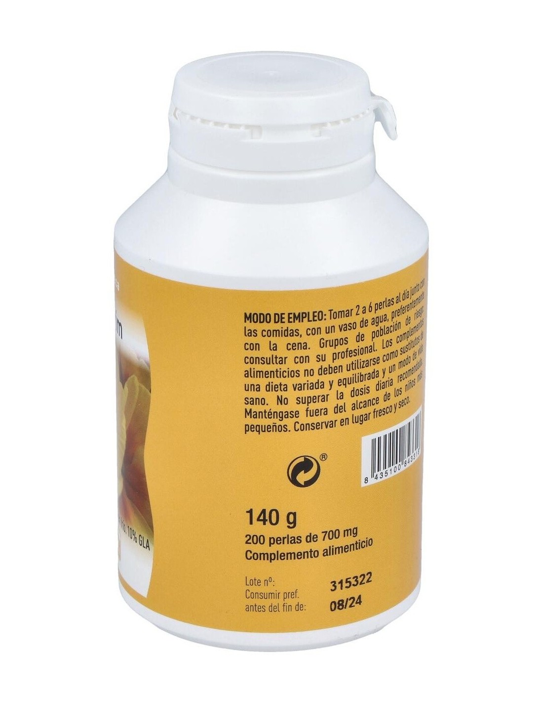 500 mg de aceite de onagra de primera presión en frío (10% GLA).