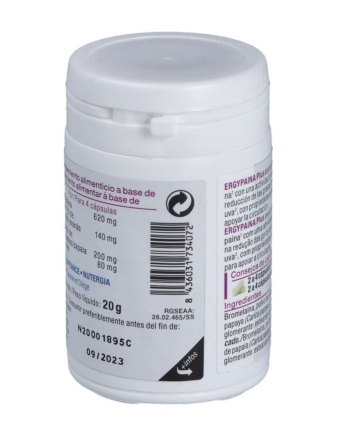 Elaborado con ingredientes de calidad, Ergypaina Plus presenta una composición que respeta los estándares de seguridad y eficacia. Su formato en cápsulas permite una absorción adecuada y una administración cómoda, ideal para quienes buscan complementar su alimentación habitual.