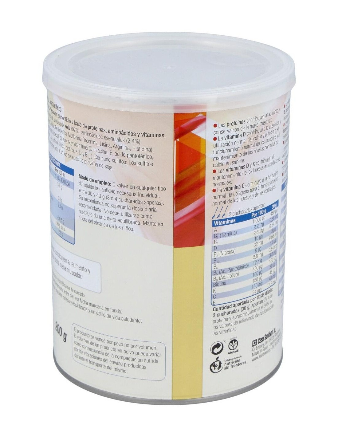 Protein-90 Vainilla 200Gr. de Santiveri es un complemento alimenticio diseñado para personas que buscan una fuente de proteína de alta calidad con un sabor suave y agradable. Es adecuado para quienes desean apoyar su ingesta proteica diaria dentro de una dieta equilibrada.