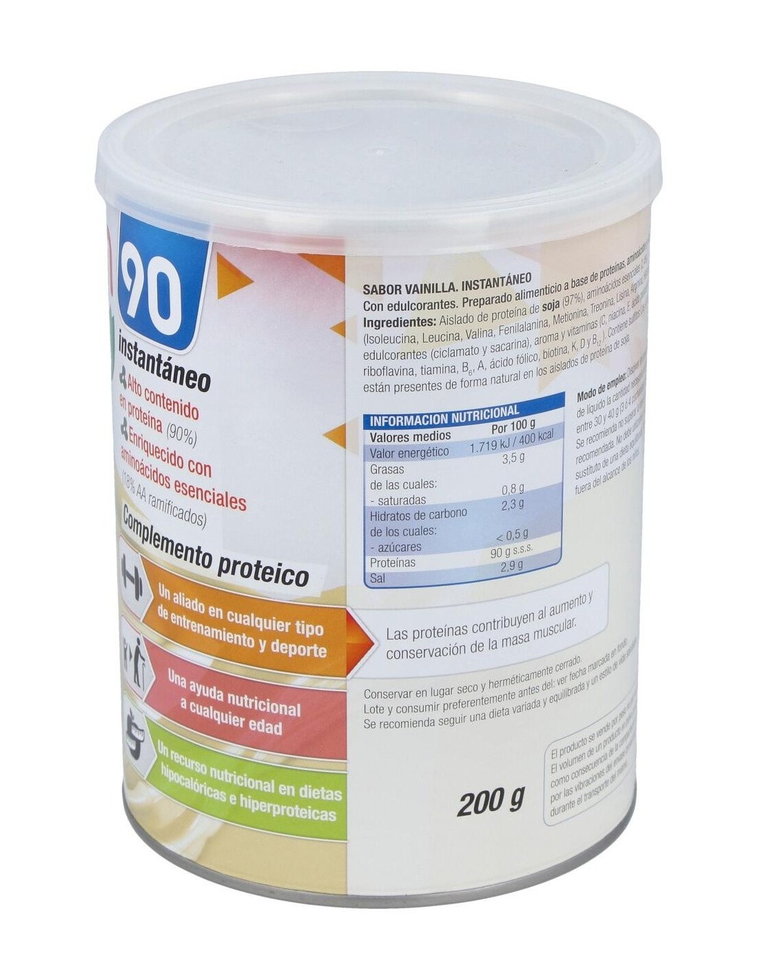 Protein-90 Vainilla 200Gr. de Santiveri combina calidad y practicidad para quienes desean integrar una fuente proteica versátil en su rutina diaria.