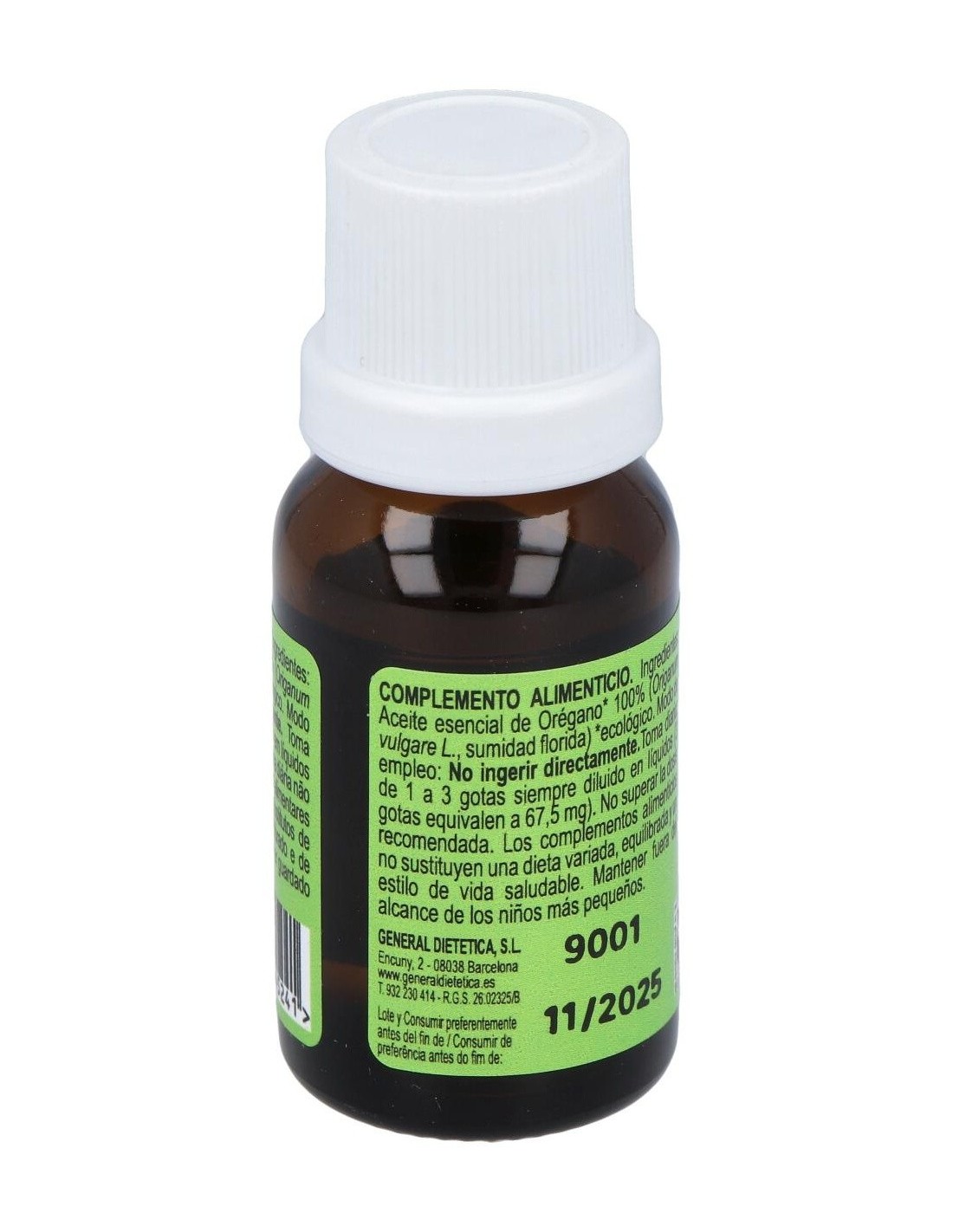 Ingredientes:Aceite esencial de Orégano* 100% (Origanum Vulgare L,. sumidad florida). (*) Procedente de agricultura ecológica.Quimiotipo: Carvacrol.Modo de empleo:Tomar de 1 a 3 gotas siempre diluido en infusiones, bebidas, zumos u otros alimentosPresentación:Envase de 15 ml.Recomendaciones y advertencias:No ingerir directamente.