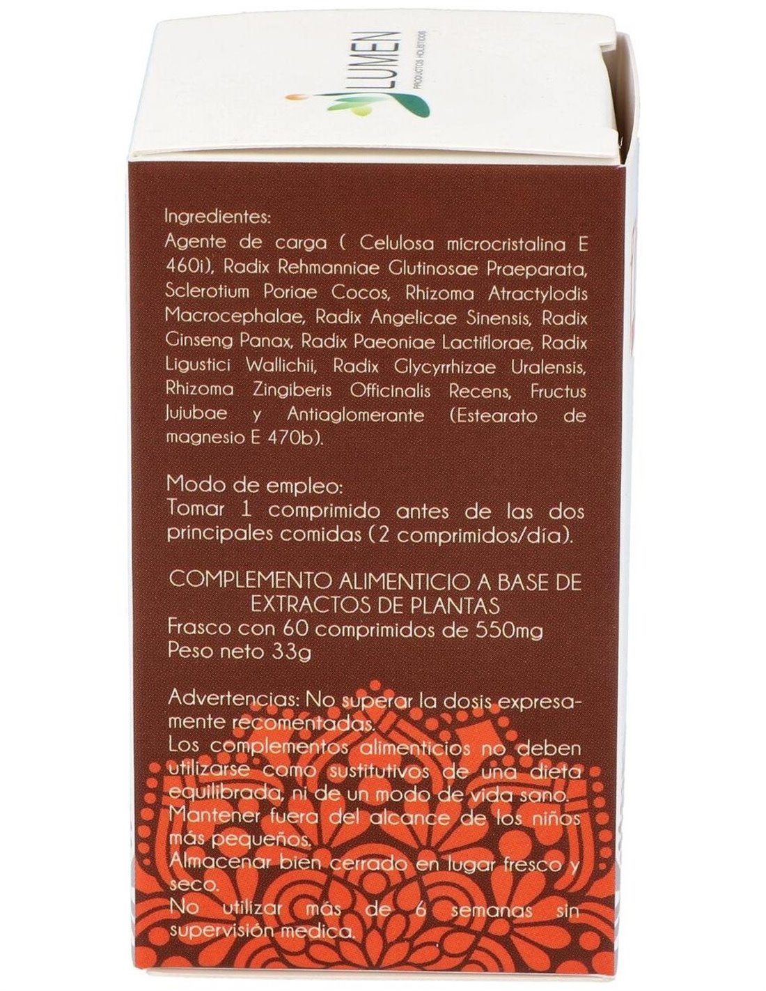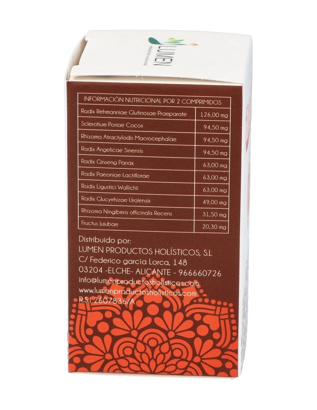 Radix Ginseng, Poria Cocos, Rhizoma Atractylodis Macrocephala, Radix Glycyrrhiza Uralensis, Radix Rehmannia Glutinosa preparada, Radix Angelica Sinensis, Radix Paeonia Lactiflora, Radix Ligustici Wallichii, Rhizoma Zingiberis Officinalis Recens, Fructus Jujuba.