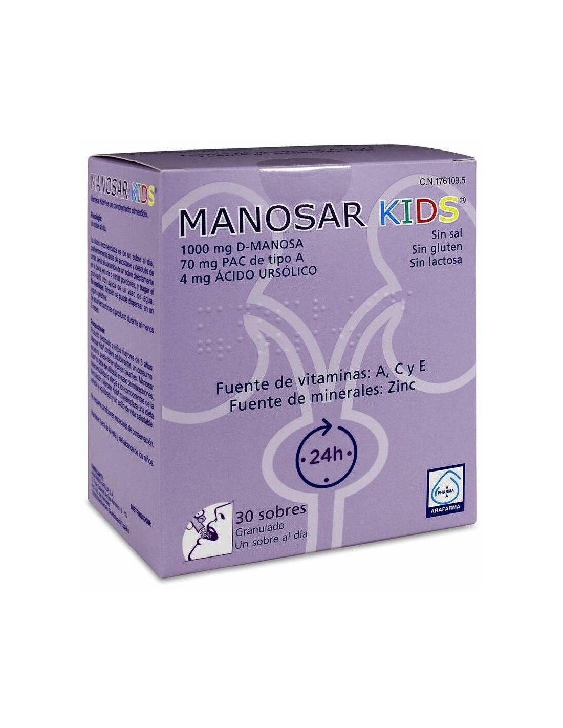 ARAFARMAComplemento alimenticio granulado apto para los niños mayores de 3 años. Fuente de vitaminas A, C y E y mineral zinc.