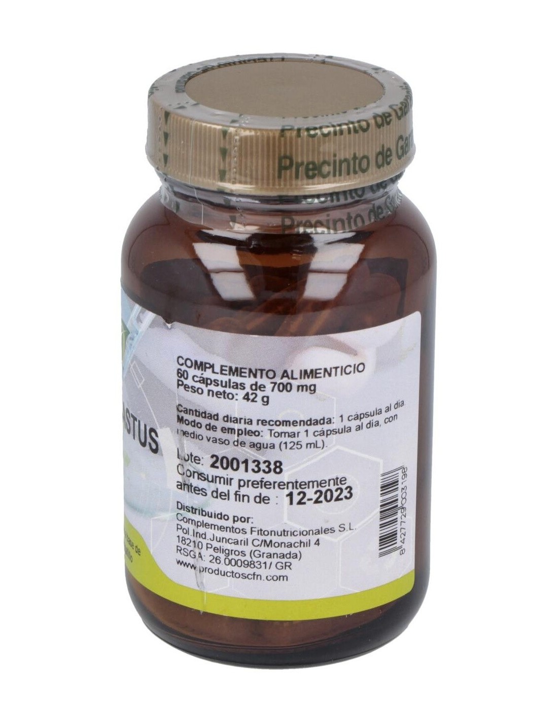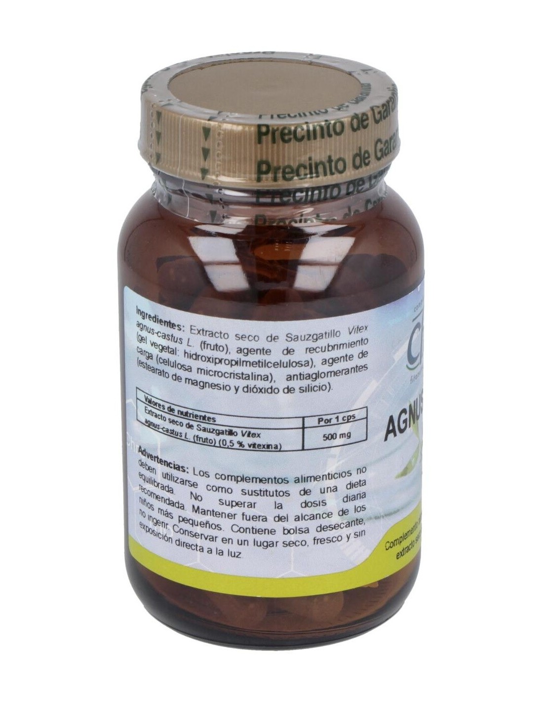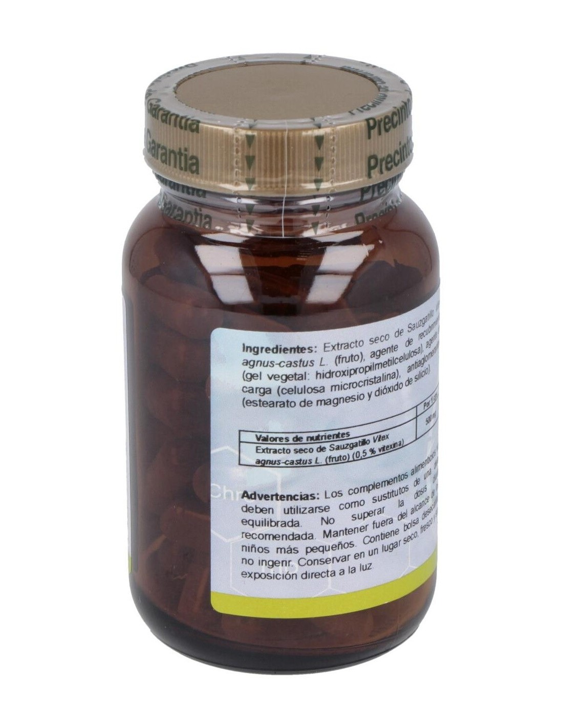 Por cada cápsula: 500mg de Extracto seco estandarizado de Vitex agnus-castus (0,5% agnúsidos).