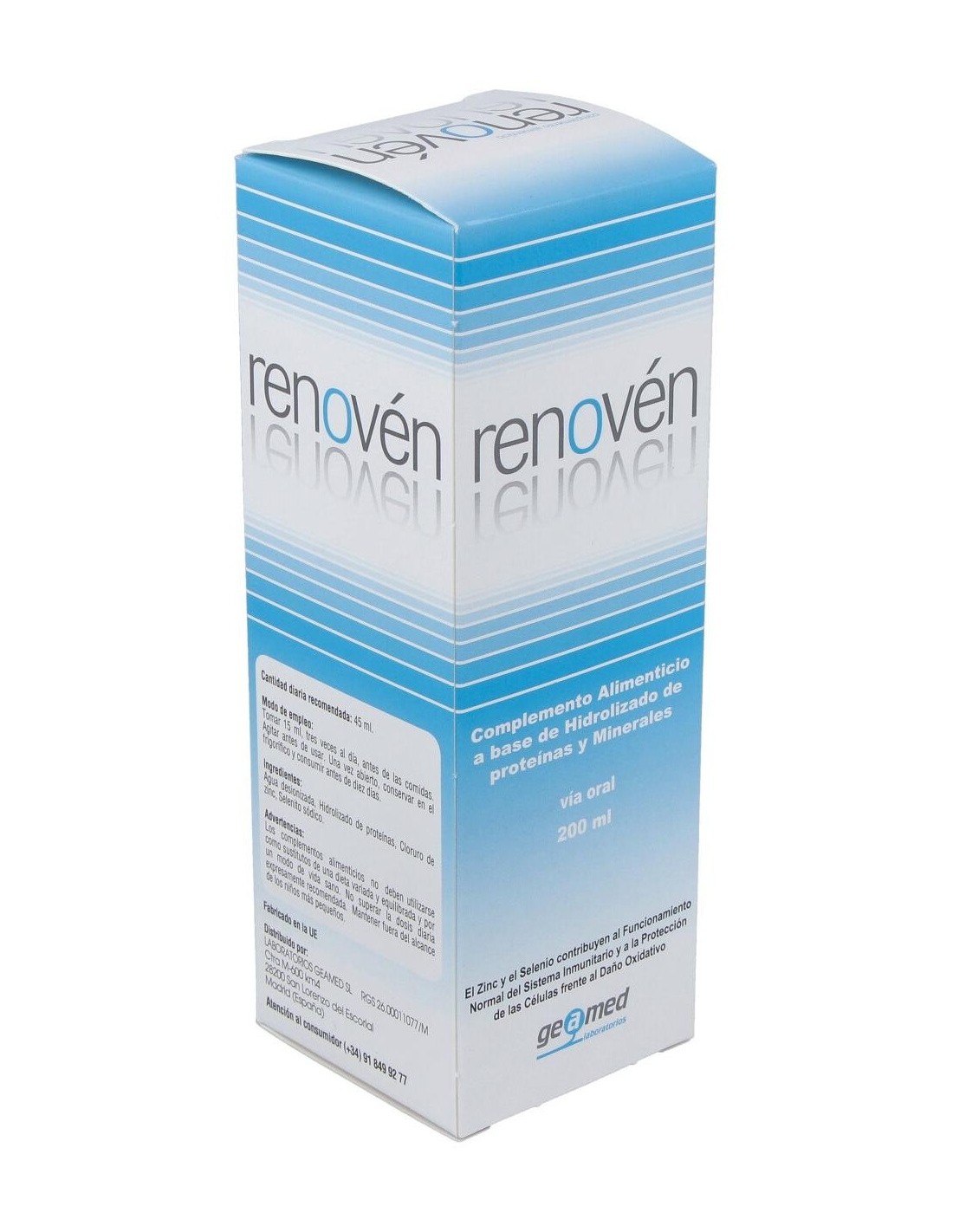 El Renoven 200Ml.Geamed de Renoven está compuesto por ingredientes que cumplen con normativas específicas, garantizando un producto confiable. Su diseño en formato líquido favorece una administración versátil, adecuada para diferentes estilos de vida.
