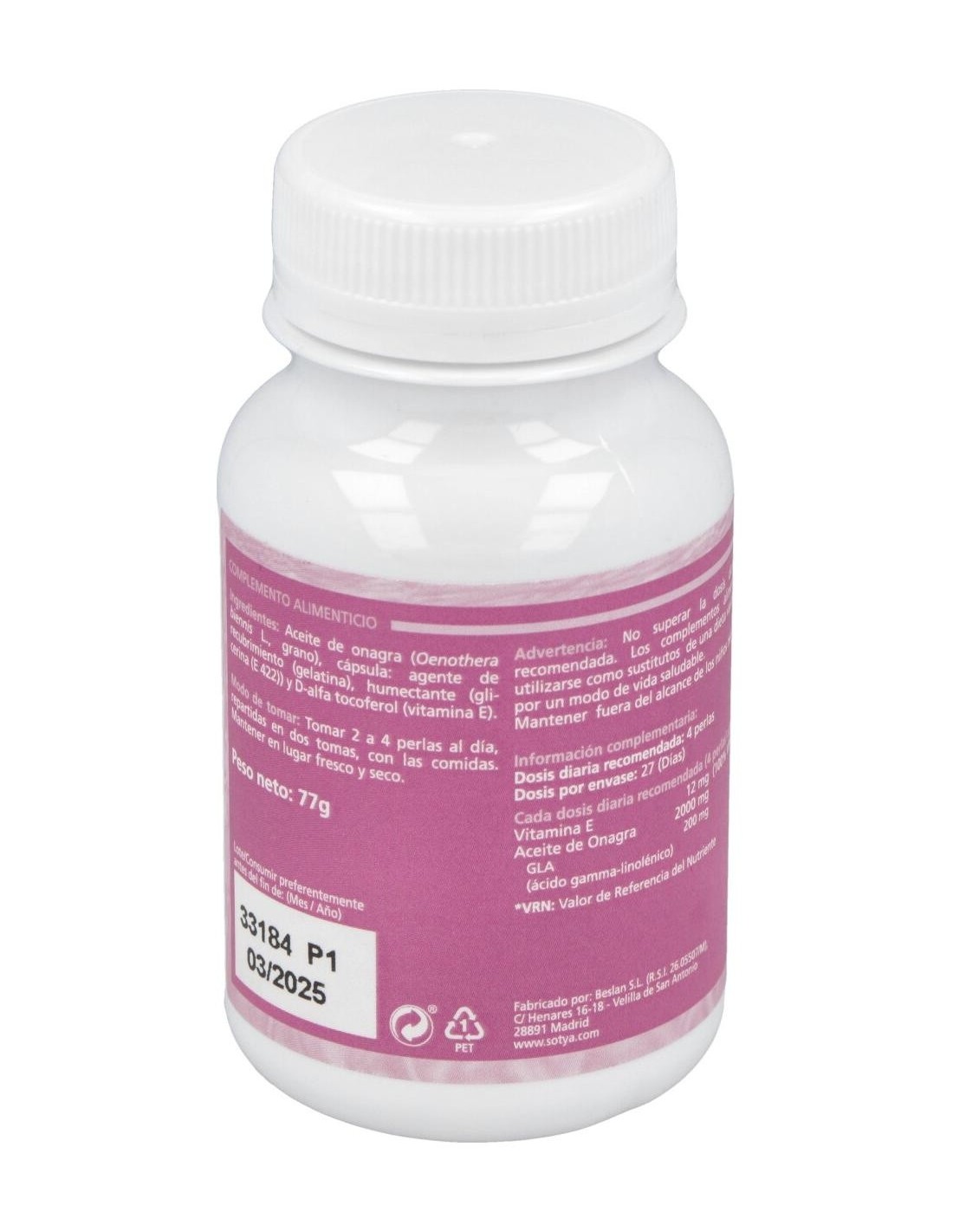 Las perlas de Onagra 700Mg de Sotya están formuladas con aceite de onagra de alta calidad, encapsulado para preservar sus propiedades. Su diseño en perlas blandas facilita la ingesta diaria, integrándose fácilmente en rutinas de cuidado personal y bienestar.