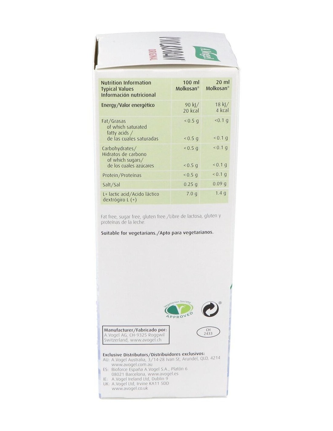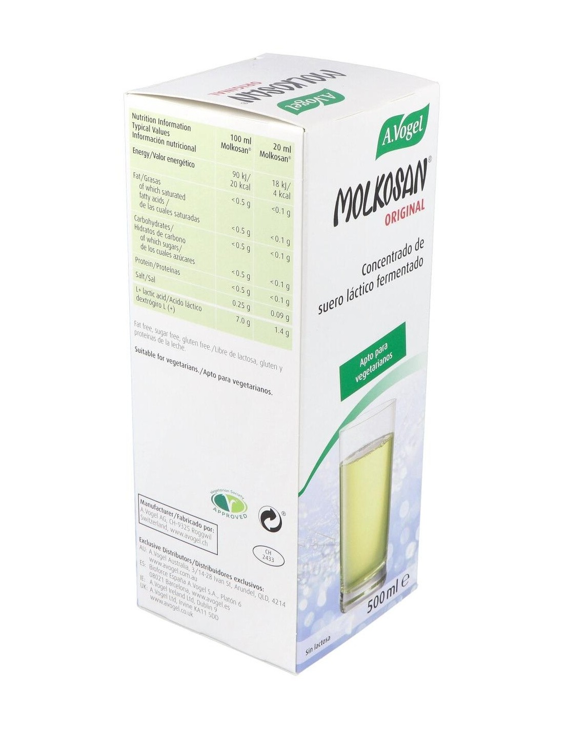 Molkosan Original Ml 500 de A.Vogel es un suplemento natural para personas que buscan apoyar su digestión diaria, formulado con fermentado láctico que contribuye al equilibrio intestinal.