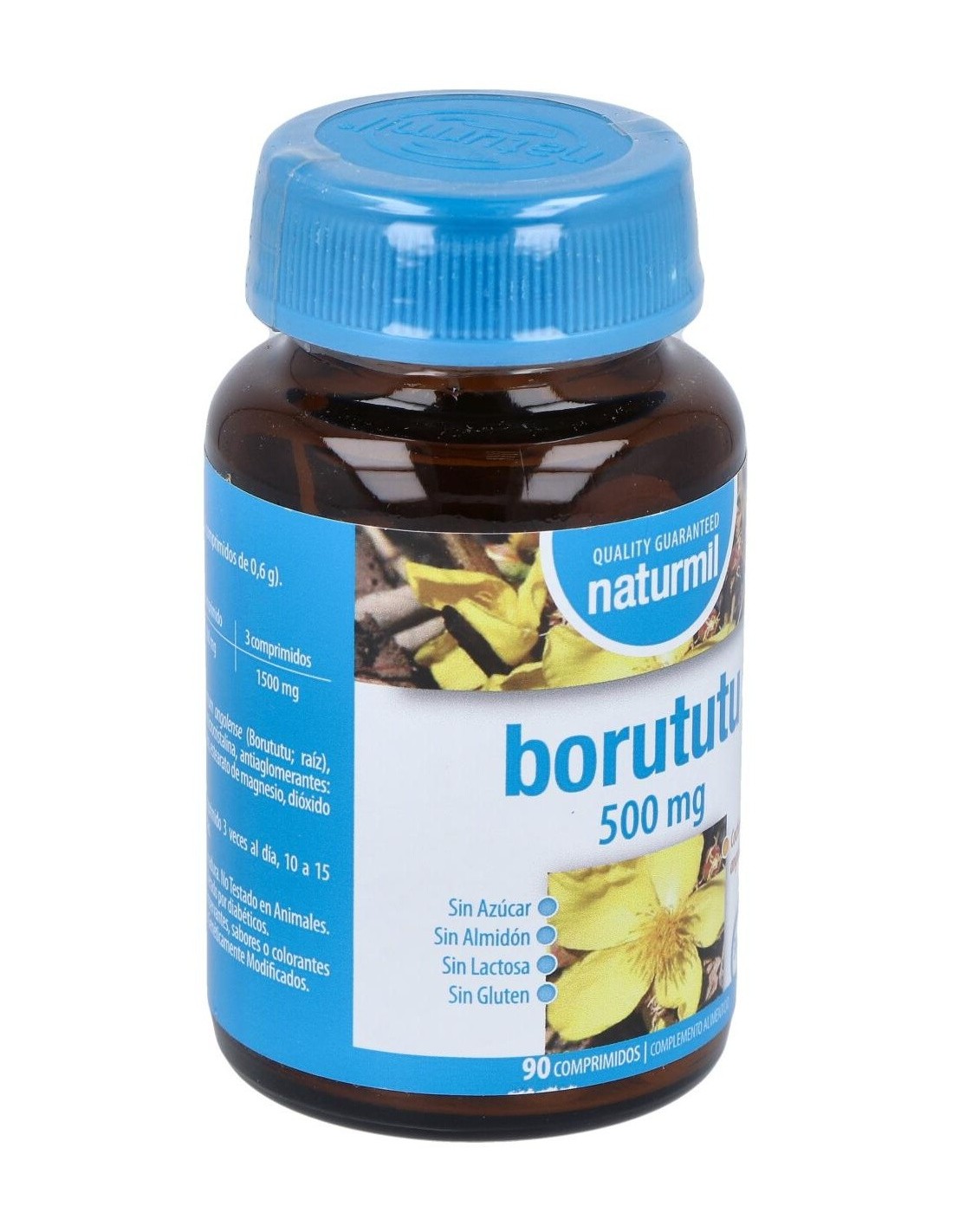 - Cada comprimido contiene 500 mg de extracto de borututu, contribuyendo a una ingesta controlada y constante.