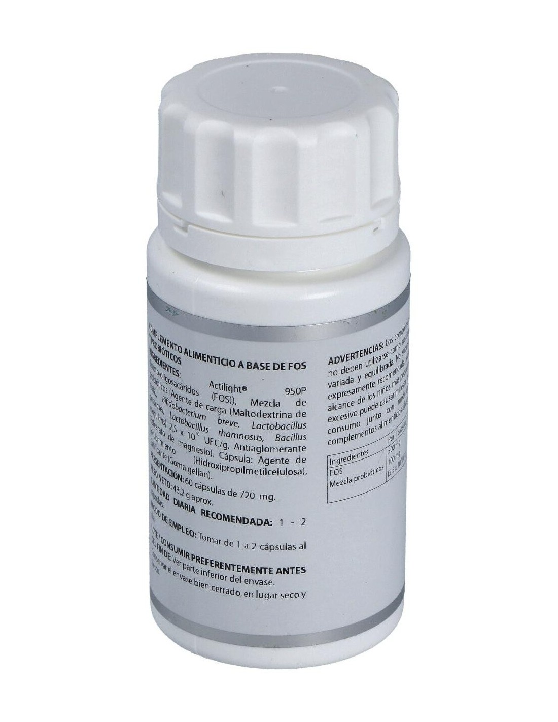 100 mg de mezcla de probióticos (Bifidobacterium breve, Lactobacillus paracasei, Lactobacillus rhamnosus, Bacillus coagulans) 2,5x1010 UFC/g.