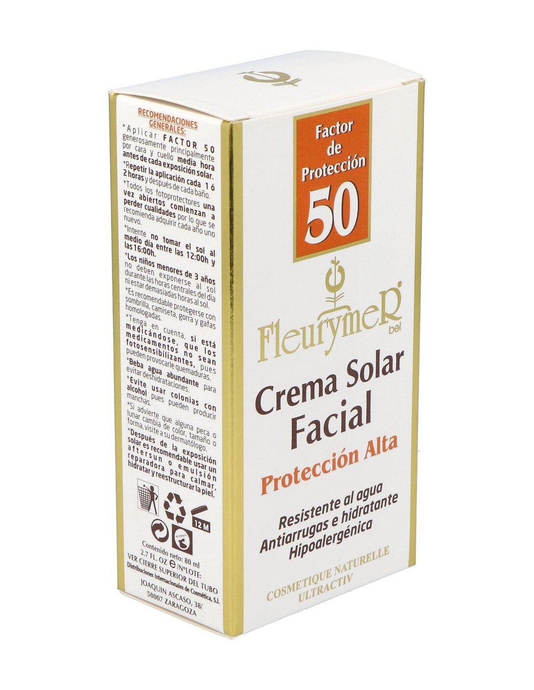 Fleurymer Crema Solar Facial SPF50 80ml es una cema solar para rostro de muy alta protección solar SPF50 y con protección de rayos solares U.V.