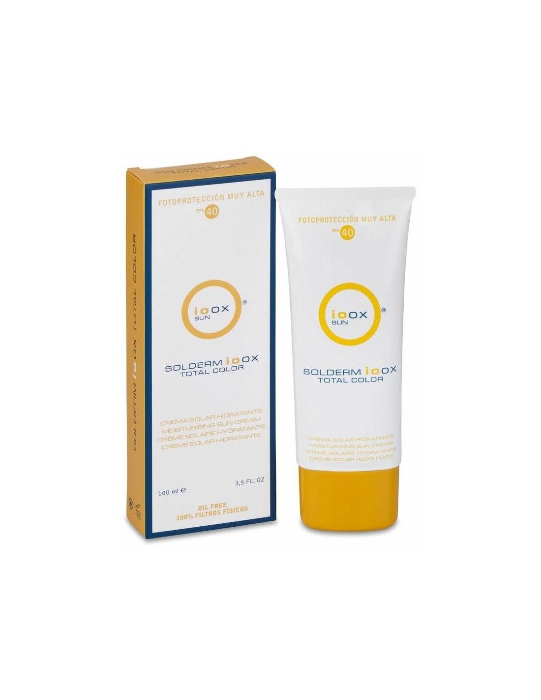 ioox® Solderm total color FPS40+ es una crema específica para pieles sensibles, delicadas e intolerantes a cremas solares convencionales. Protege la piel de los efectos nocivos que provocan los rayos UVA, UVB e IR. Esta crema ha sido especialmente diseñada para proteger las pieles hiperreactivas, muy sensibles e intolerantes al sol y con intolerancia a filtros químicos.