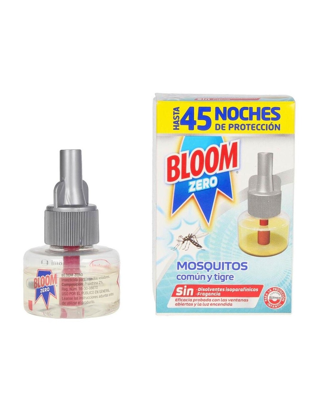 Bloom Zero Mosquitos Recambio 45 Noches 18ml es un recambio para el aparato eléctrico Bloom antimosquitos.