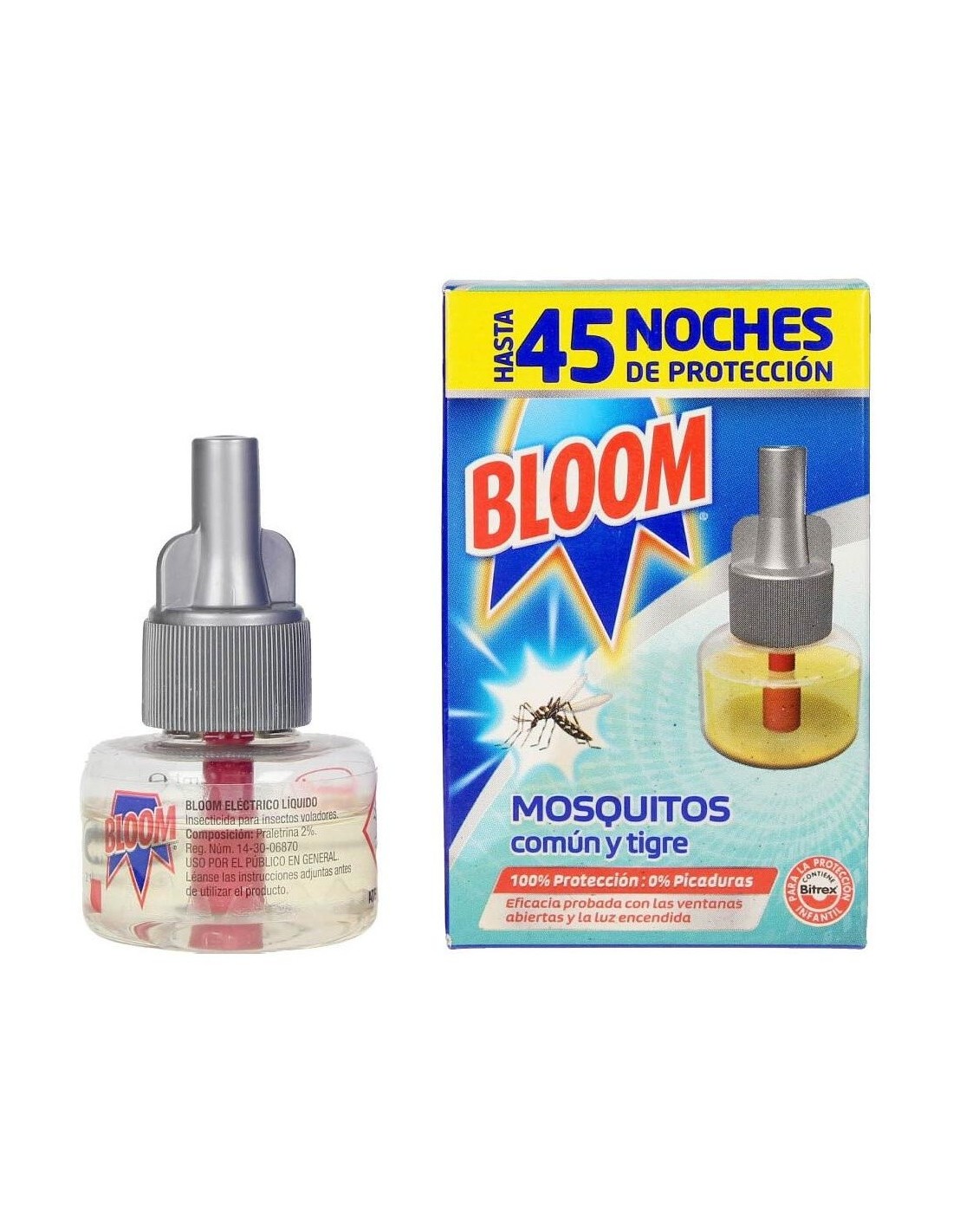BLOOM DERMBloom Recambio Eléctrico Líquido ofrece hasta 45 noches de protección contra los mosquitos común y tigre. El recambio es compatible con cualquiera de los aparatos eléctricos líquidos de Bloom.