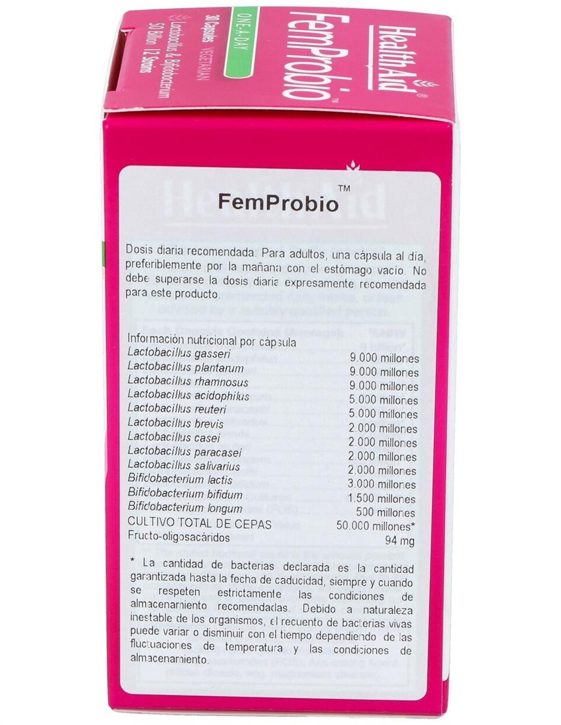 Femprobio 50.000Millones 30Vcap. Health Aid de Health Aid ofrece una opción para quienes buscan complementar su bienestar digestivo con una fórmula probiótica concentrada y de fácil uso.