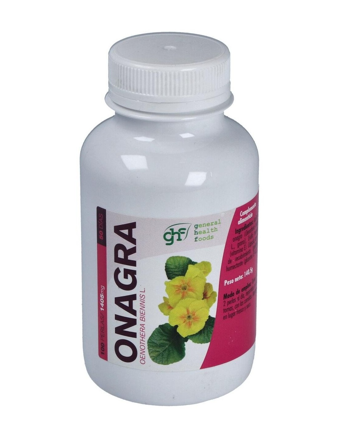 Onagra 1400Mg. 100Perlas de Ghf es un suplemento diseñado para personas interesadas en complementar su dieta con ácidos grasos esenciales provenientes de la onagra. Este producto es adecuado para quienes buscan una opción práctica para incorporar este ingrediente en su rutina diaria.