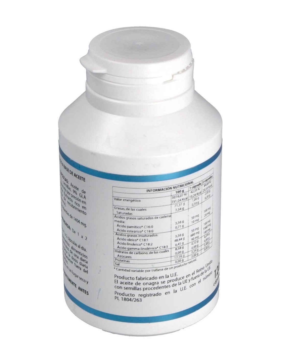 1.000 mg de aceite de semillas de onagra obtenido por presión en frío.