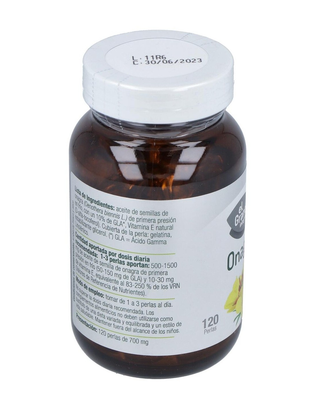 El Aceite De Onagra 120Perlas de El Granero es un suplemento natural para personas que buscan apoyar el bienestar hormonal y la salud de la piel, formulado con perlas que facilitan su dosificación y consumo diario.