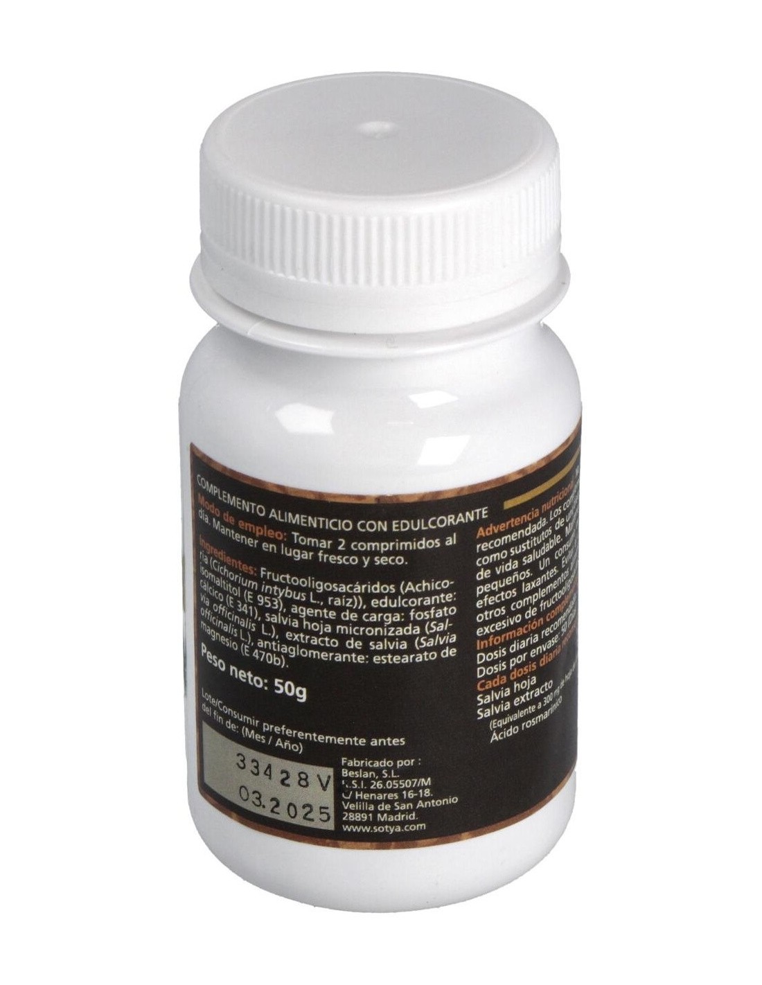 Este suplemento utiliza extracto de salvia cuidadosamente seleccionado para mantener su composición activa. Su formato en comprimidos permite una dosificación práctica y cómoda, ideal para quienes prefieren una administración sencilla. La presentación en envase compacto facilita su almacenamiento y transporte.