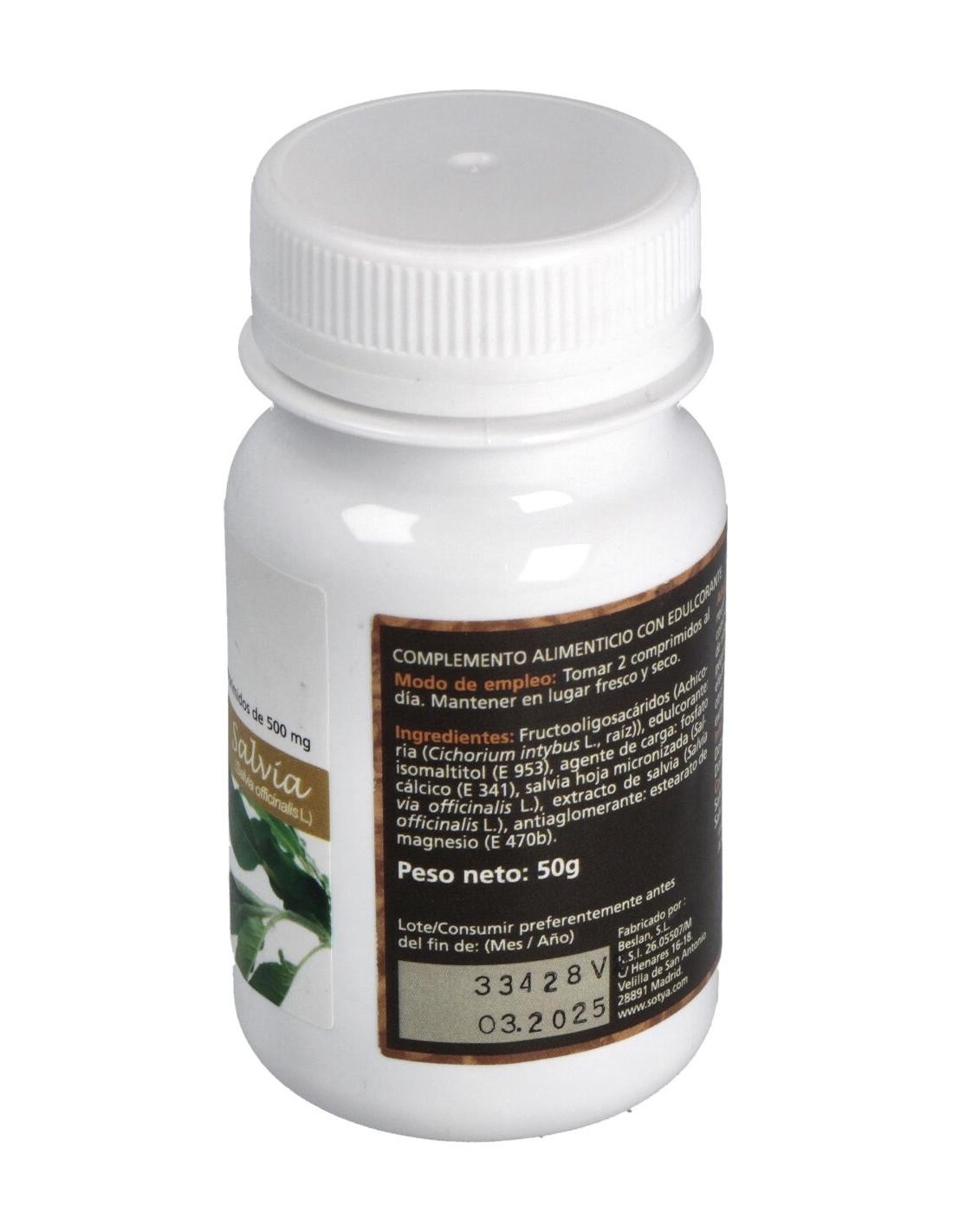 - Cada comprimido contiene 500 mg de extracto de salvia, reconocido por sus propiedades tradicionales.